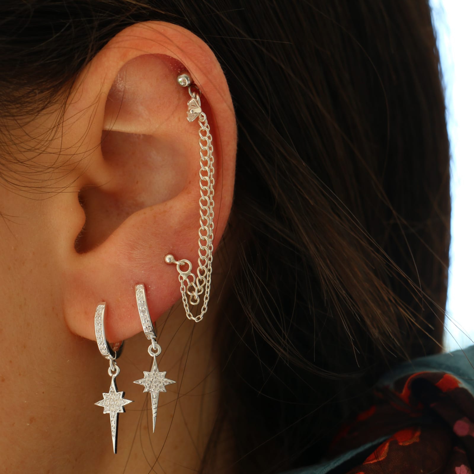 פירסינג הליקס ועגיל – שרשרת כפולה וקריסטל כוכב לבן