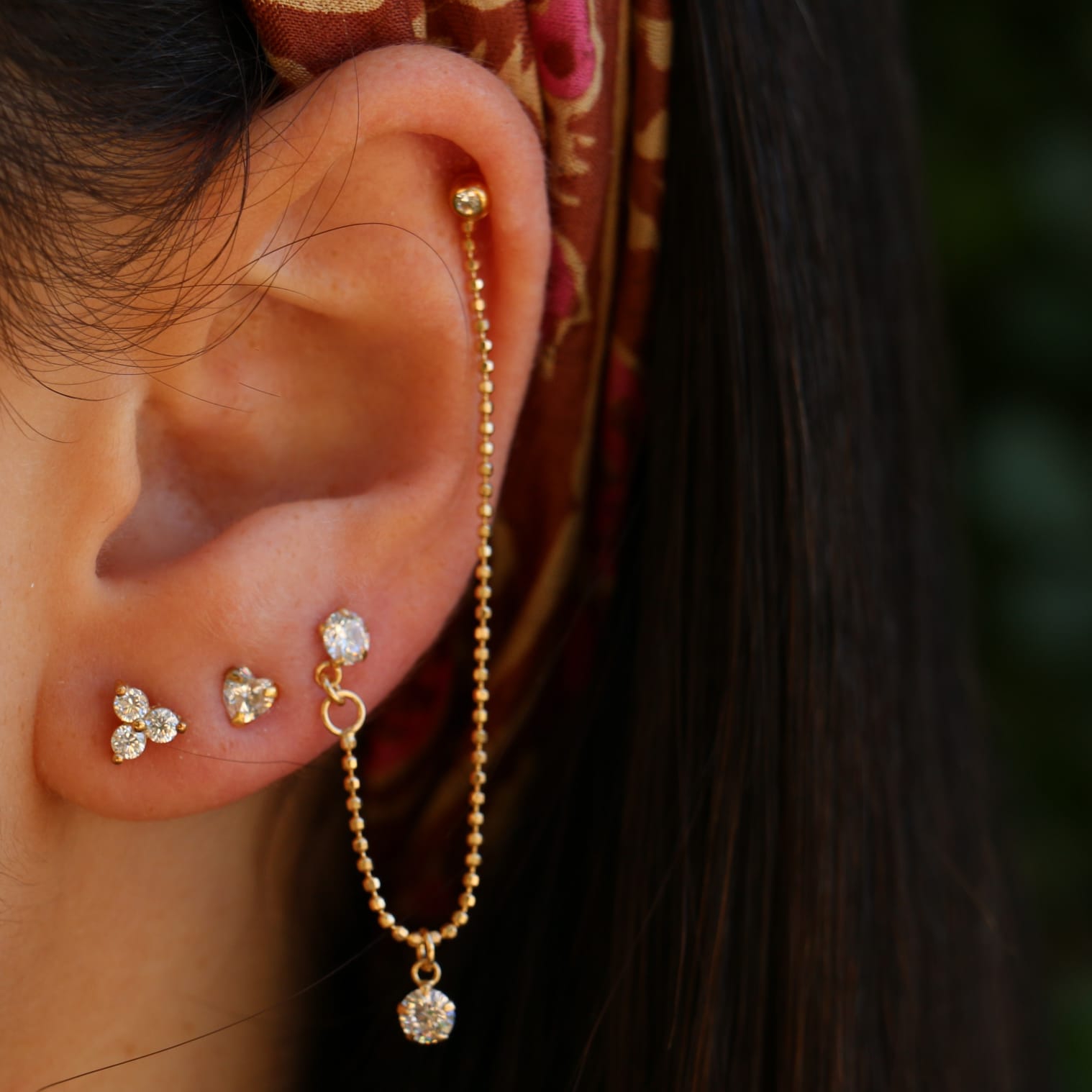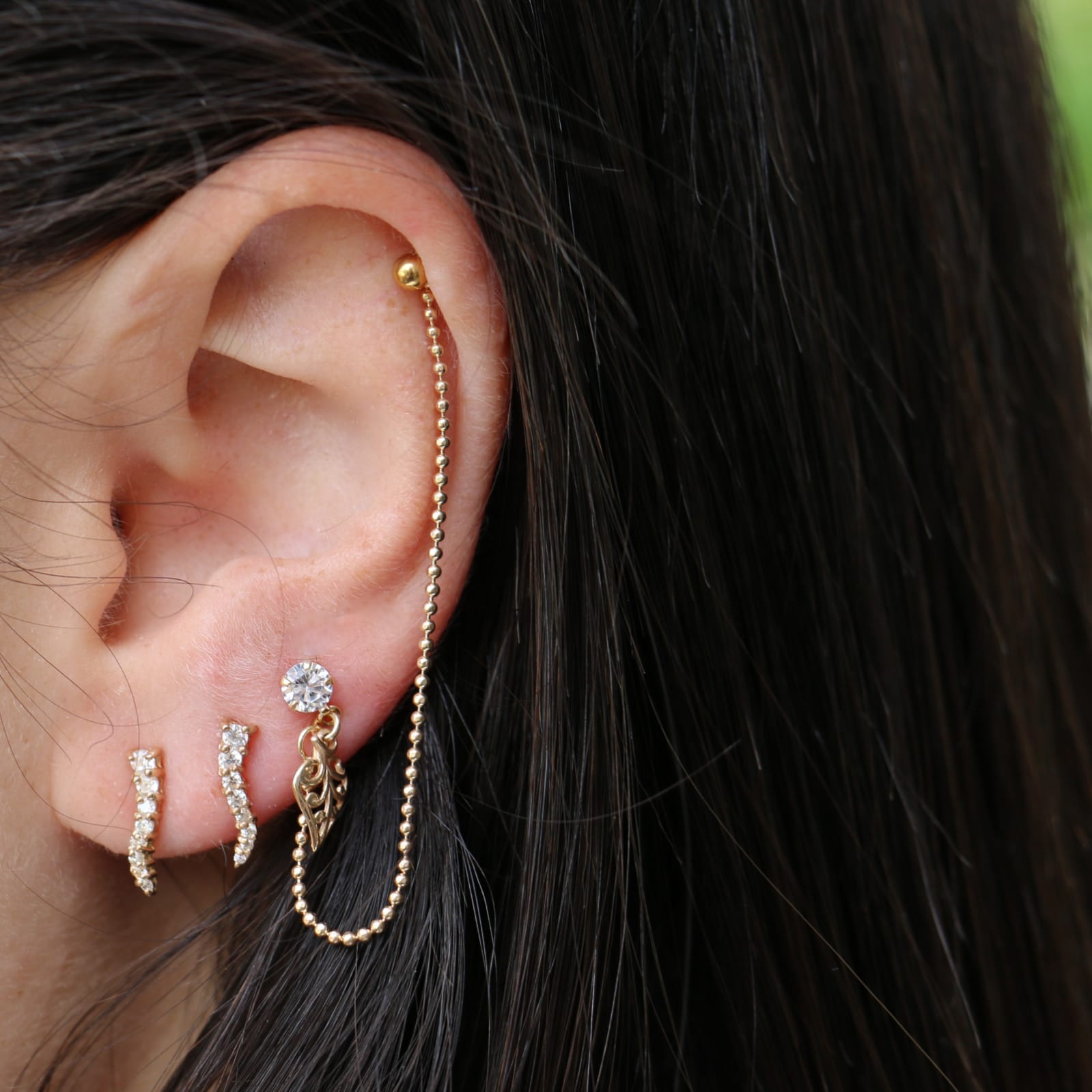 פירסינג הליקס ועגיל מציפוי זהב – שרשרת וקריסטל עגול לבן