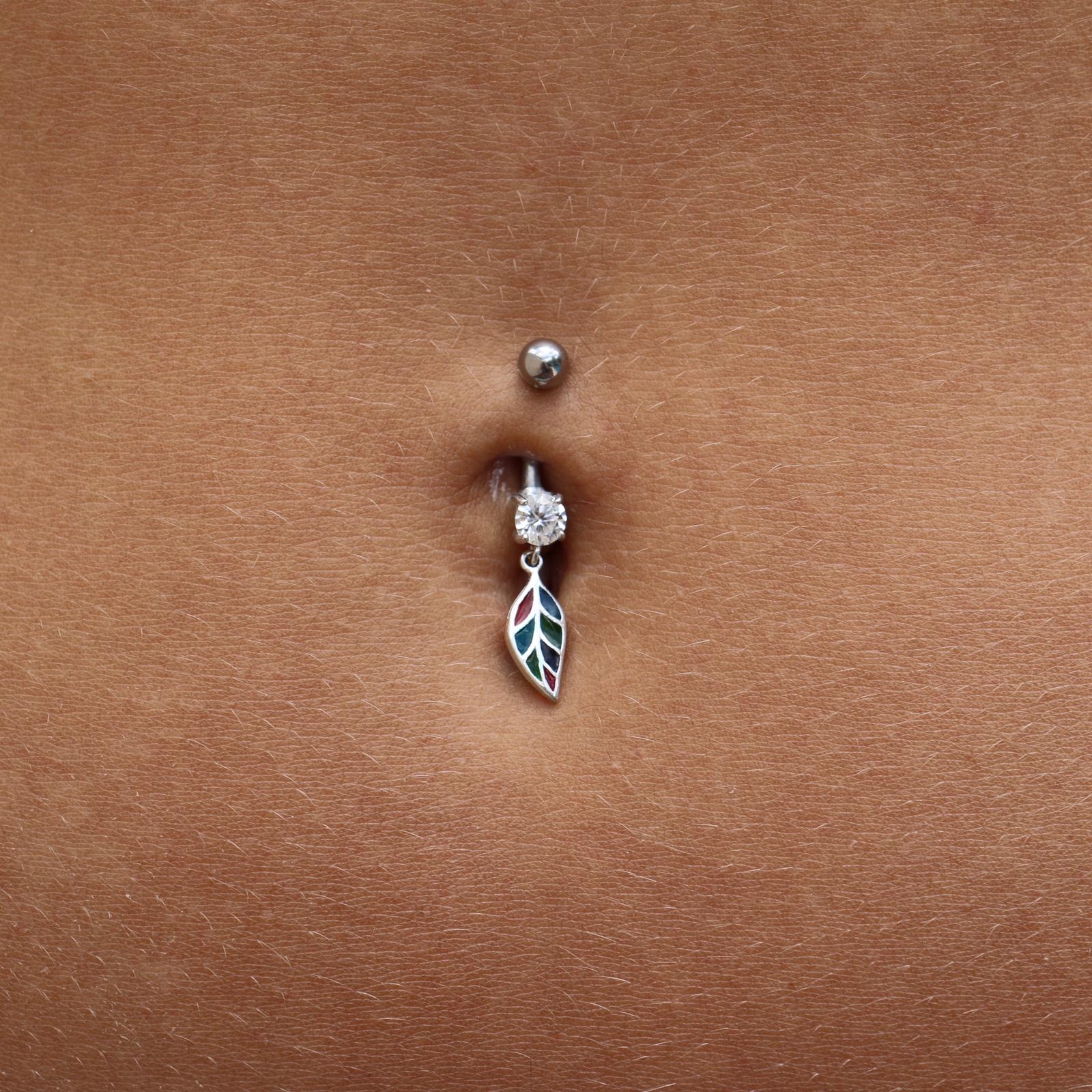 עגיל פירסינג בטבור – עיטור עלה צבעוני קריסטל לבן