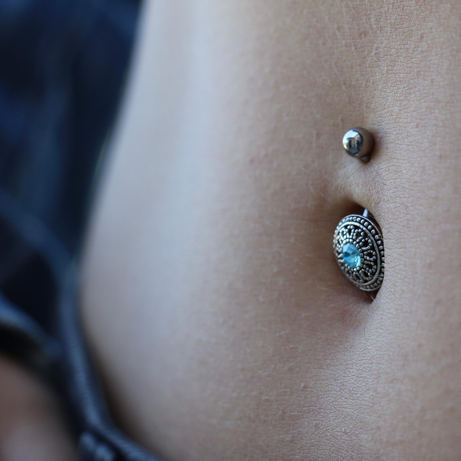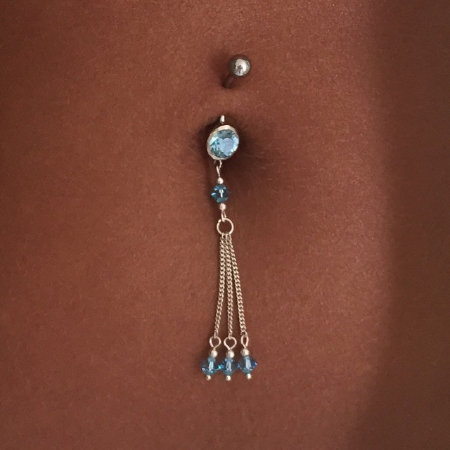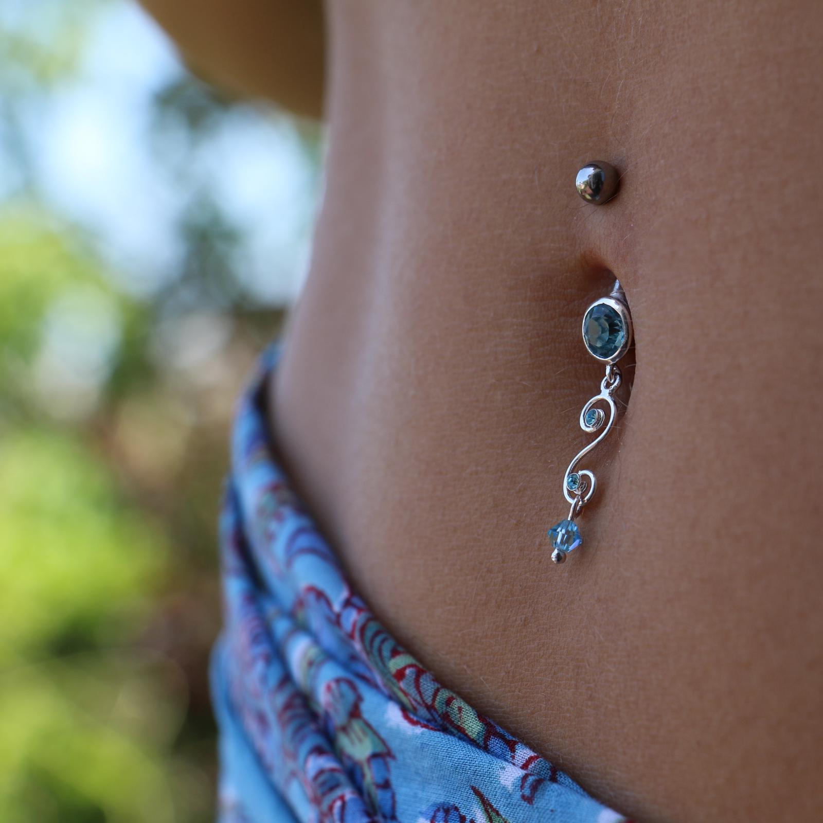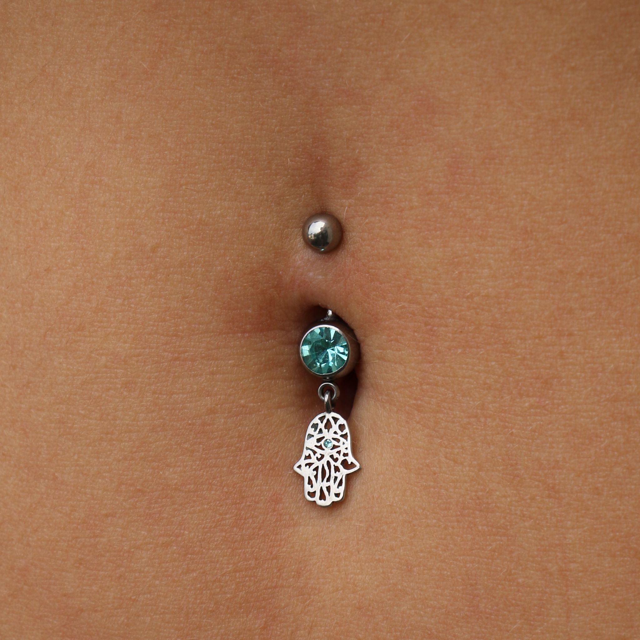 עגיל פירסינג בטבור – קריסטל תכלת וחמסה