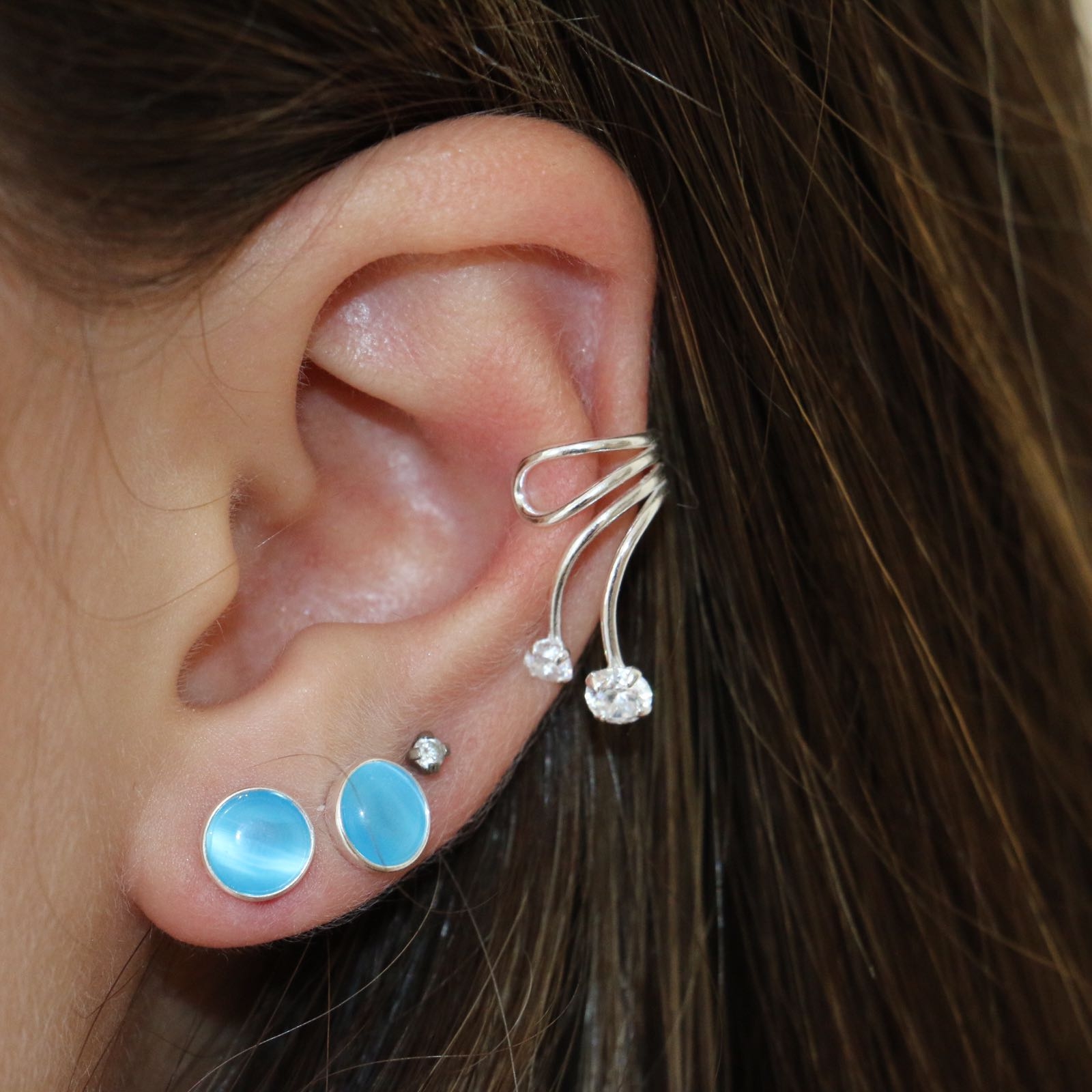 עגיל ללא חור קליפ מכסף קריסטלים תכלת משובצים