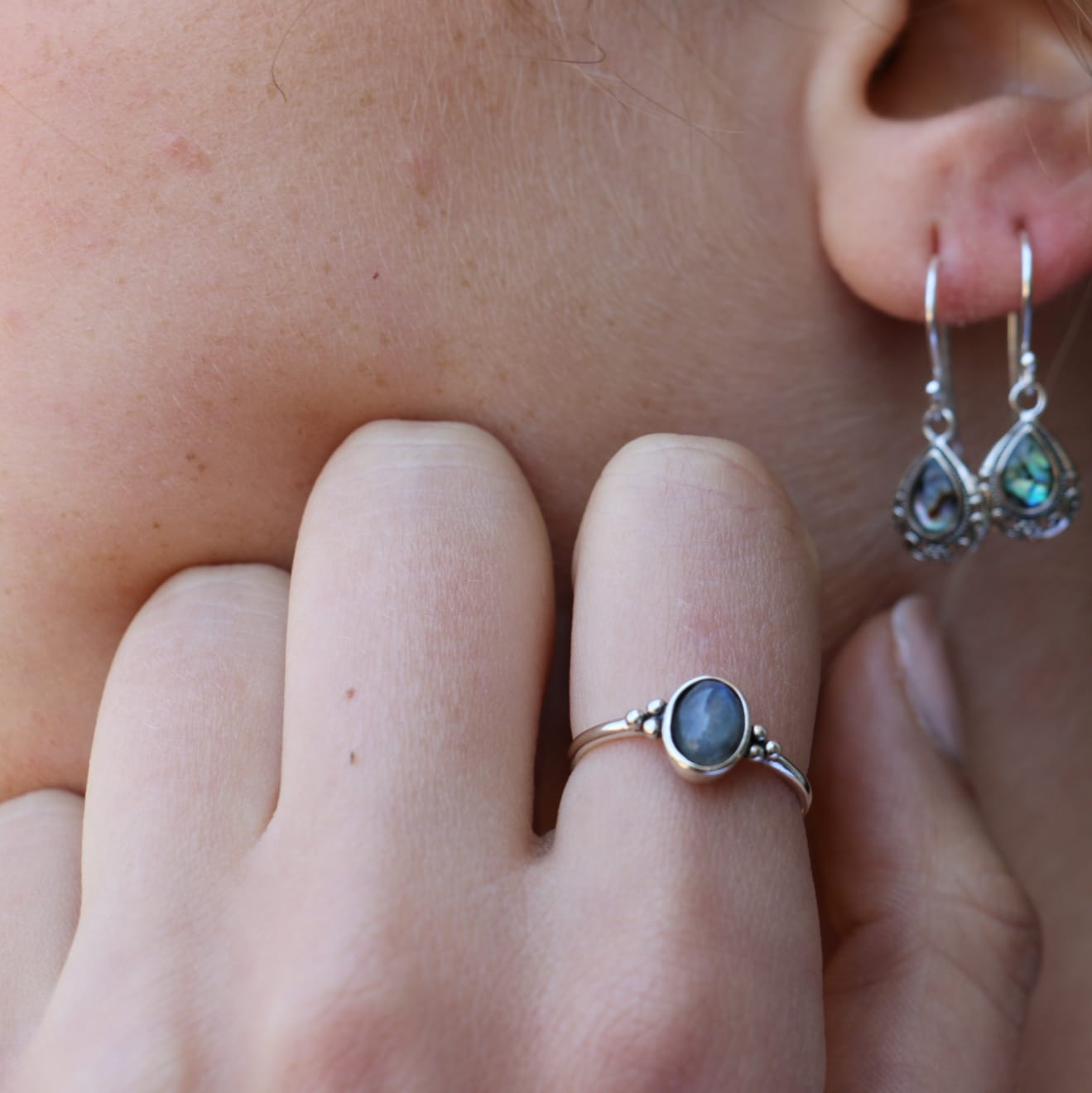 טבעת מכסף – אובלי כחול אפור סולדייט