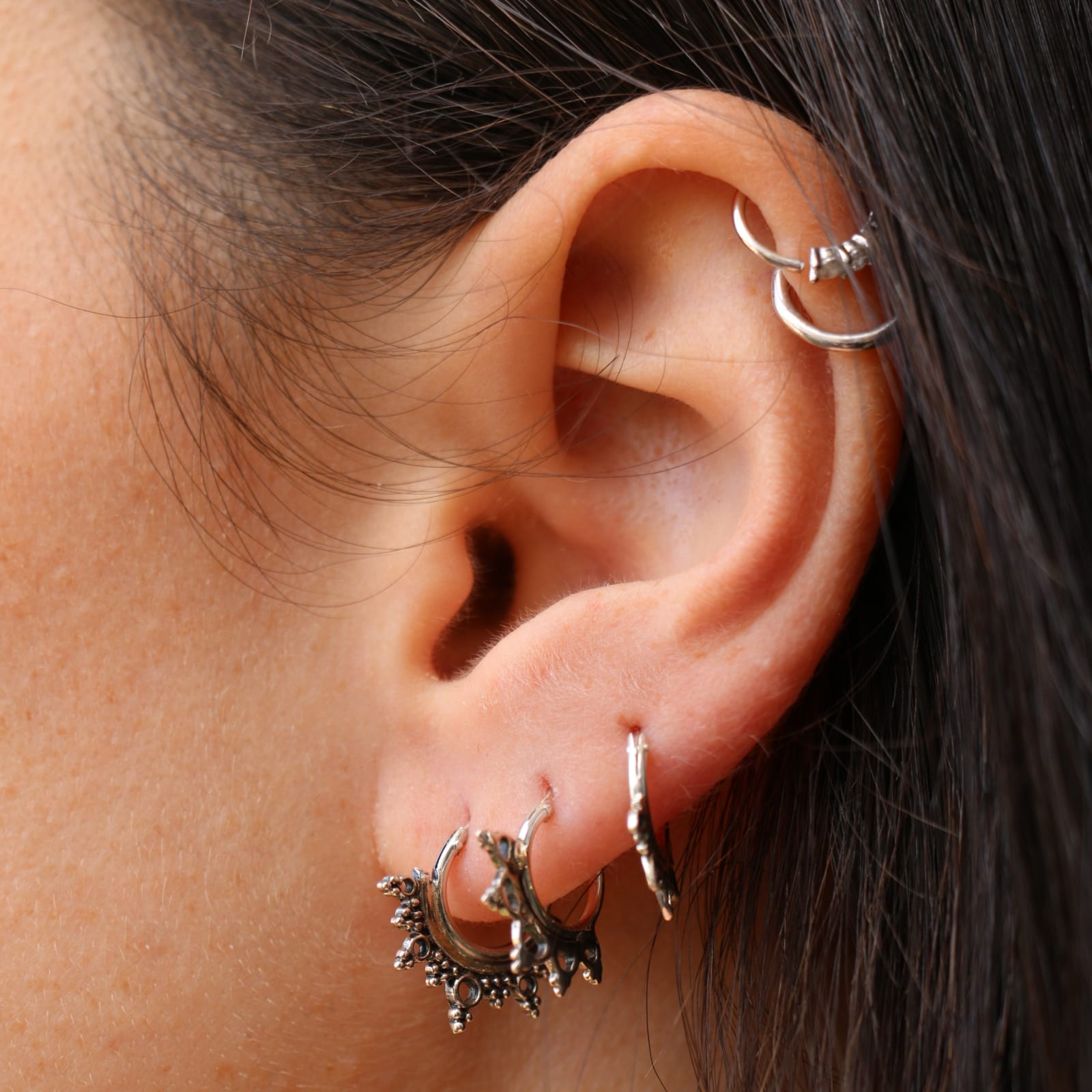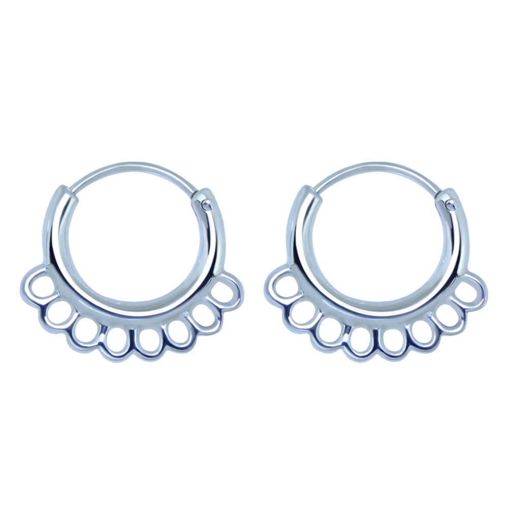 עגילי חישוק אינדונזים – מכסף 8 מ"מ מעוטר