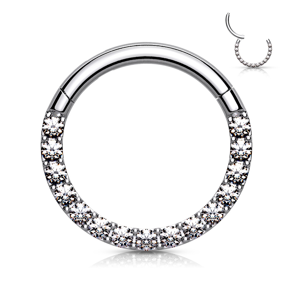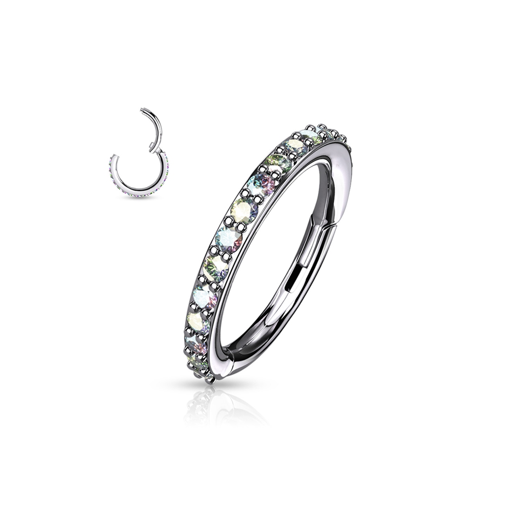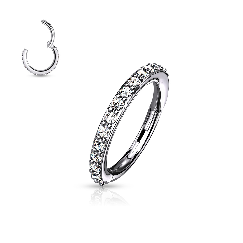 עגיל טבעת קליקר לטבור מטיטניום 1.6 ממ משובצת קריסטלים