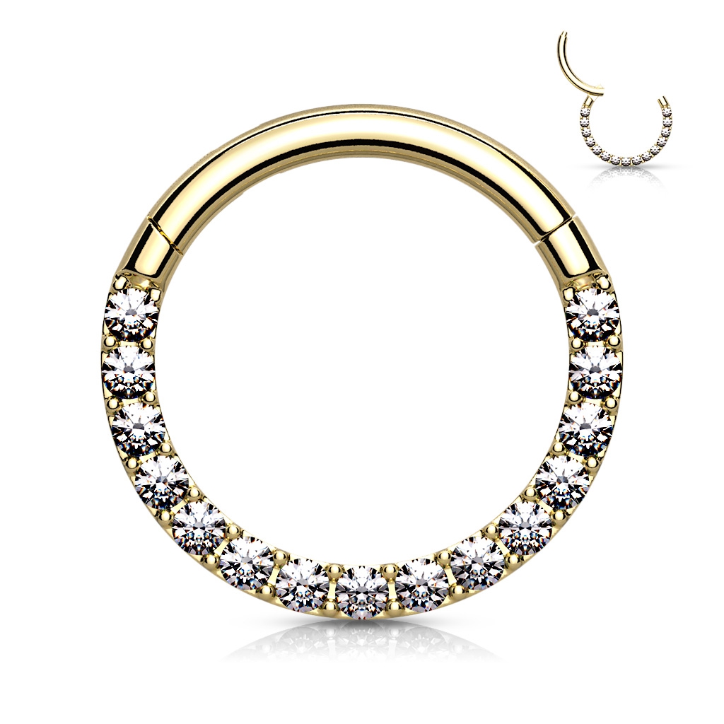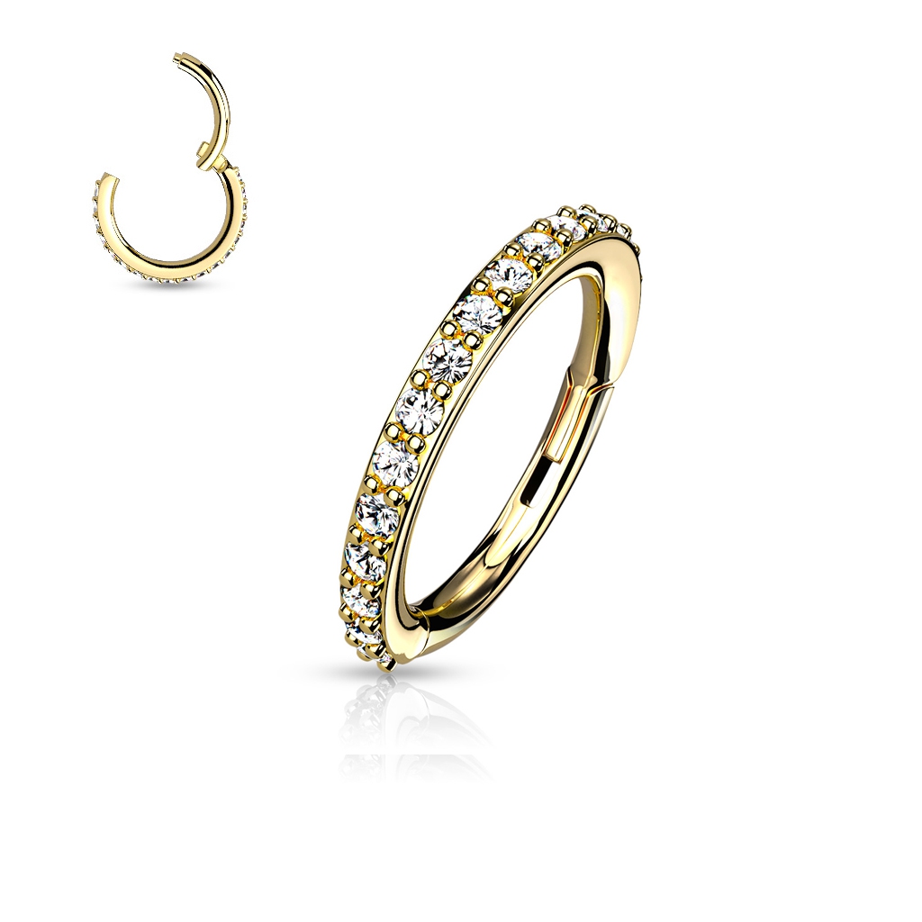 עגיל טבעת קליקר לטבור מטיטניום וציפוי זהב 1.6 ממ משובצת קריסטלים