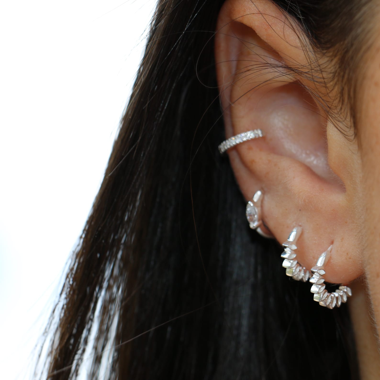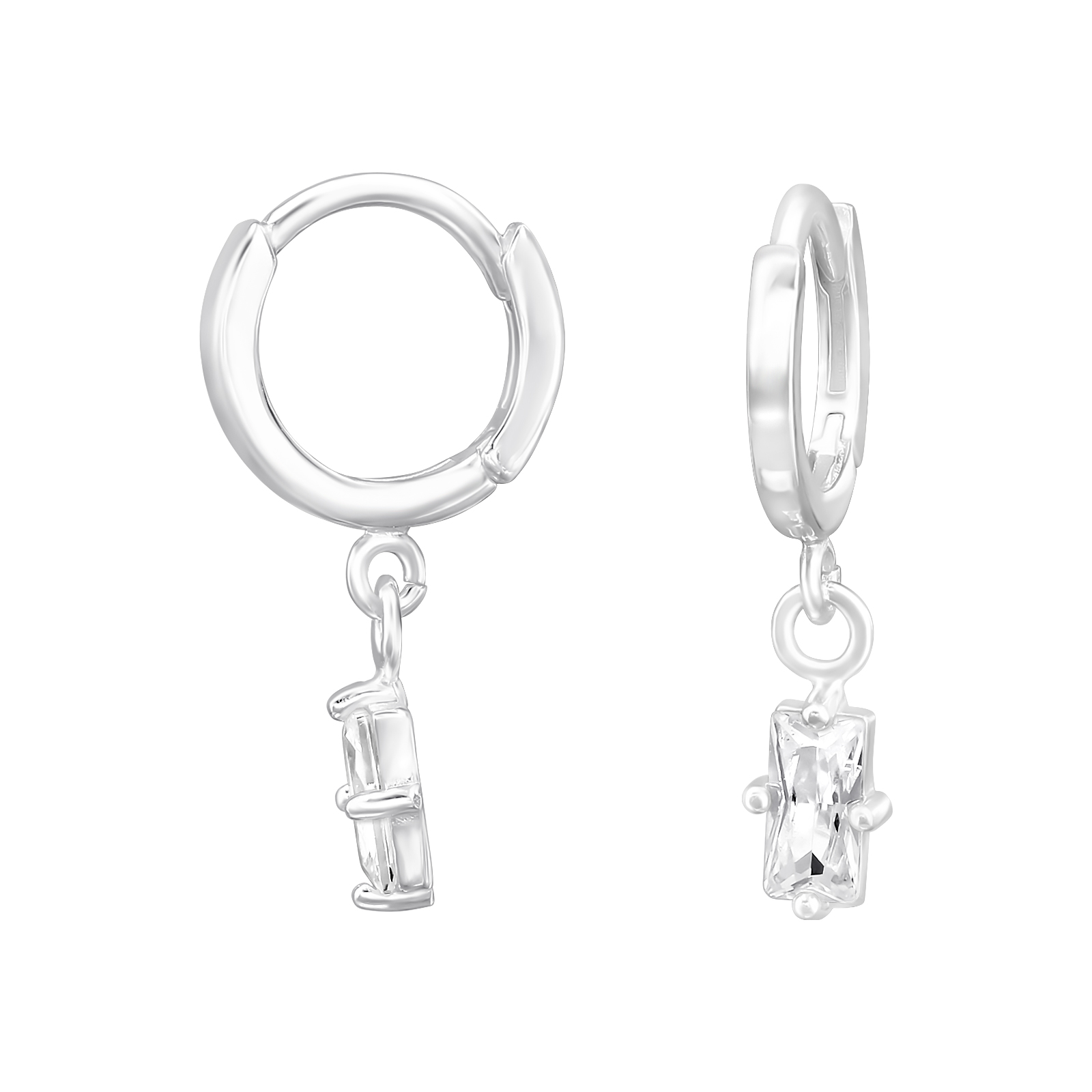 עגילי חישוק האגיס מכסף נתלה זירקוניה באגט לבן