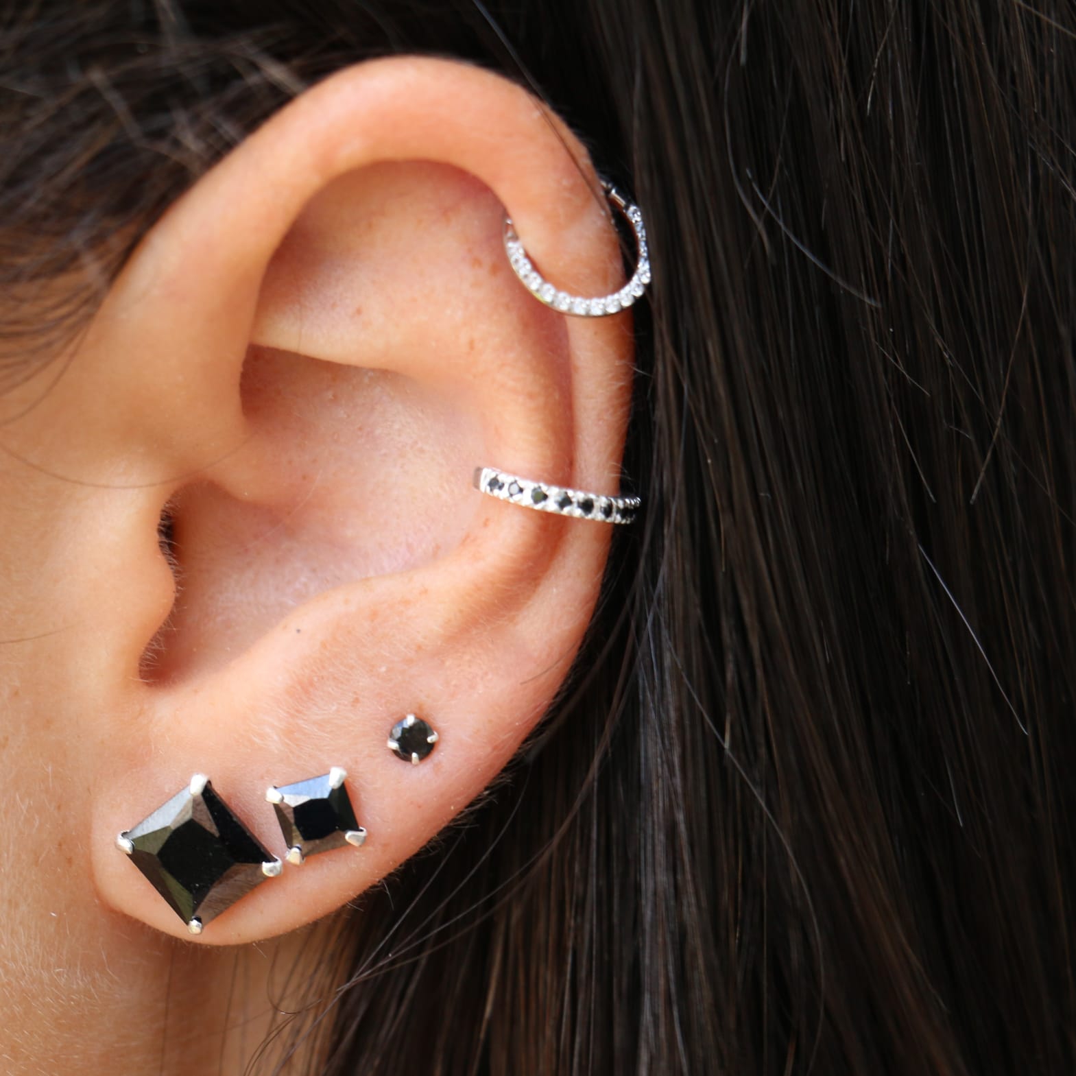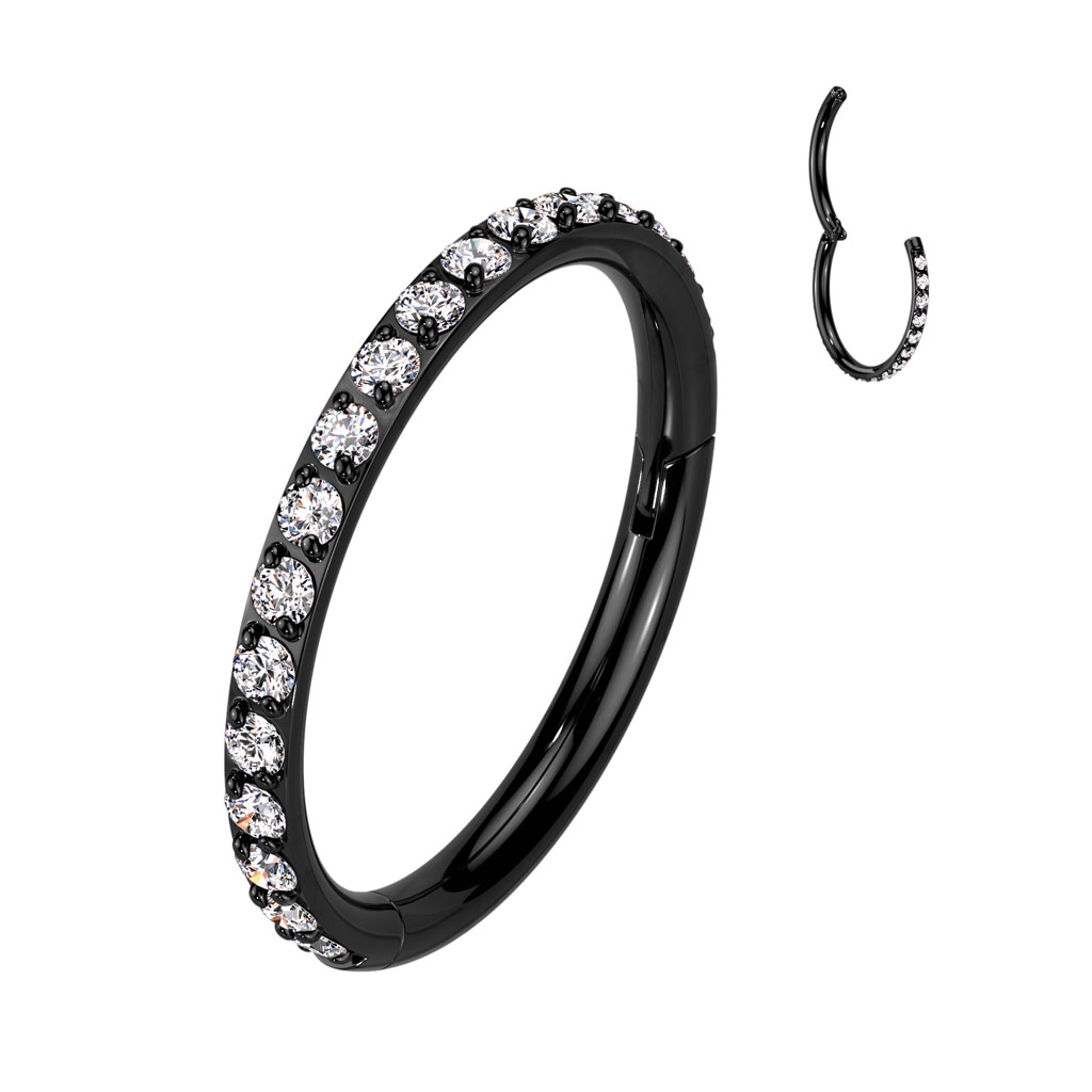 עגיל קונץ' / הליקס / ספטום טבעת קליקר שחורה משובצת קריסטלים לבנים 1.2 מ"מ