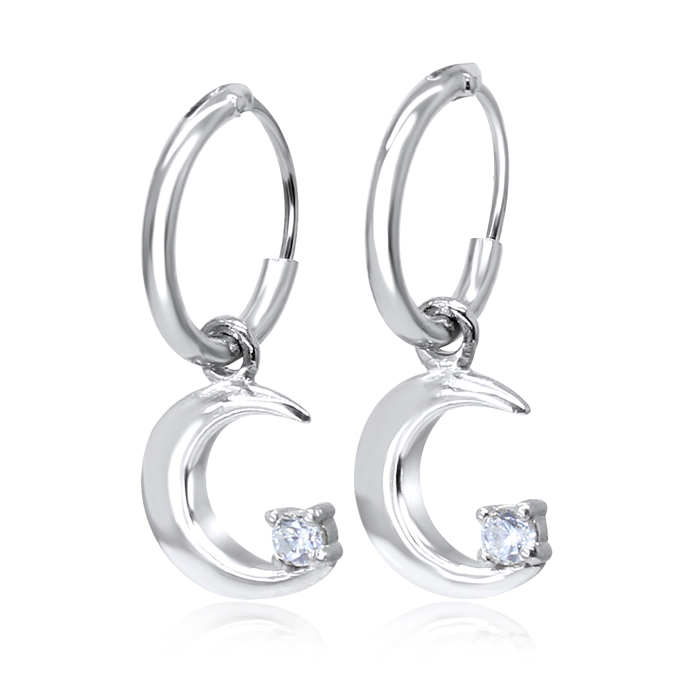 עגילי חישוק – מכסף 8 מ"מ ירח וקריסטל לבן