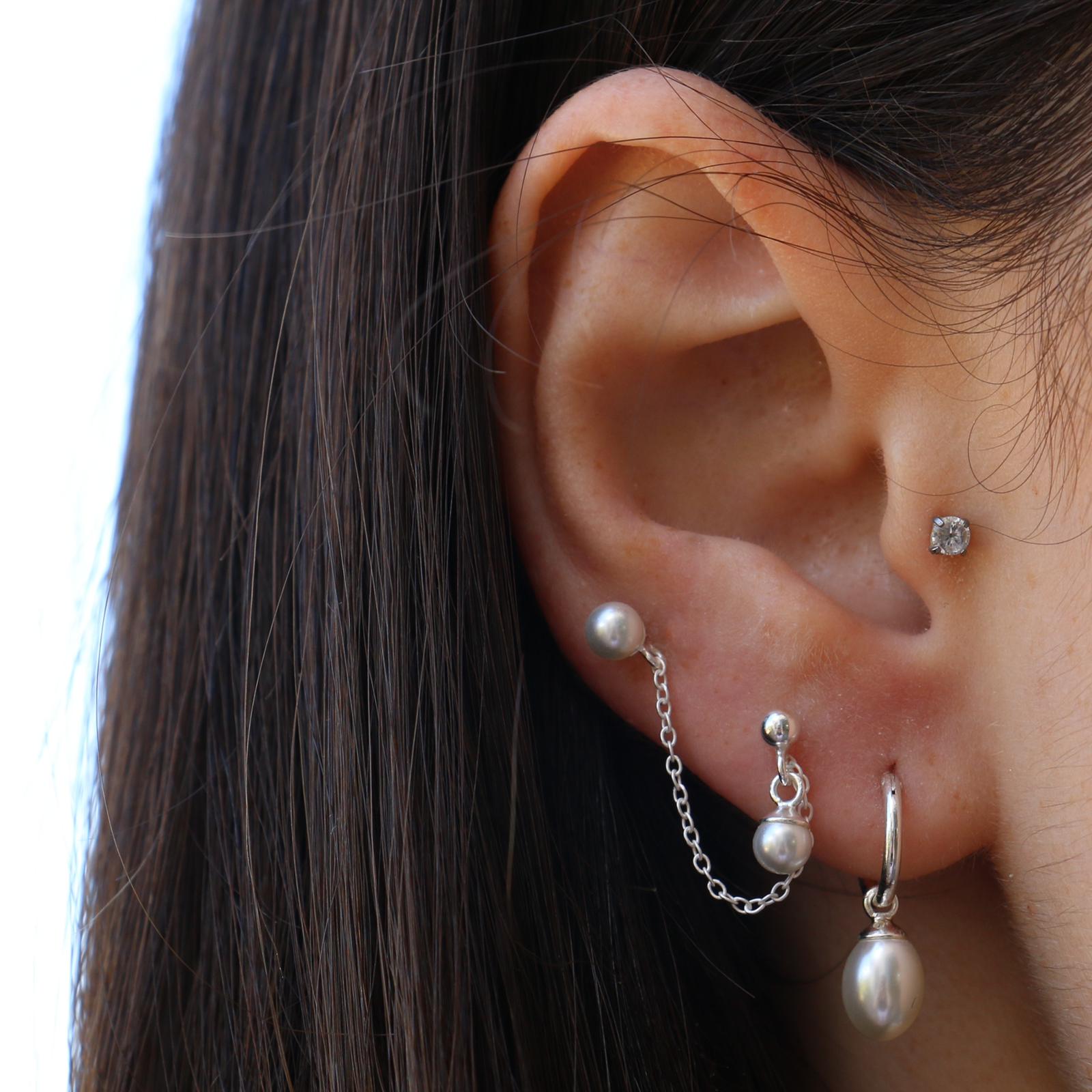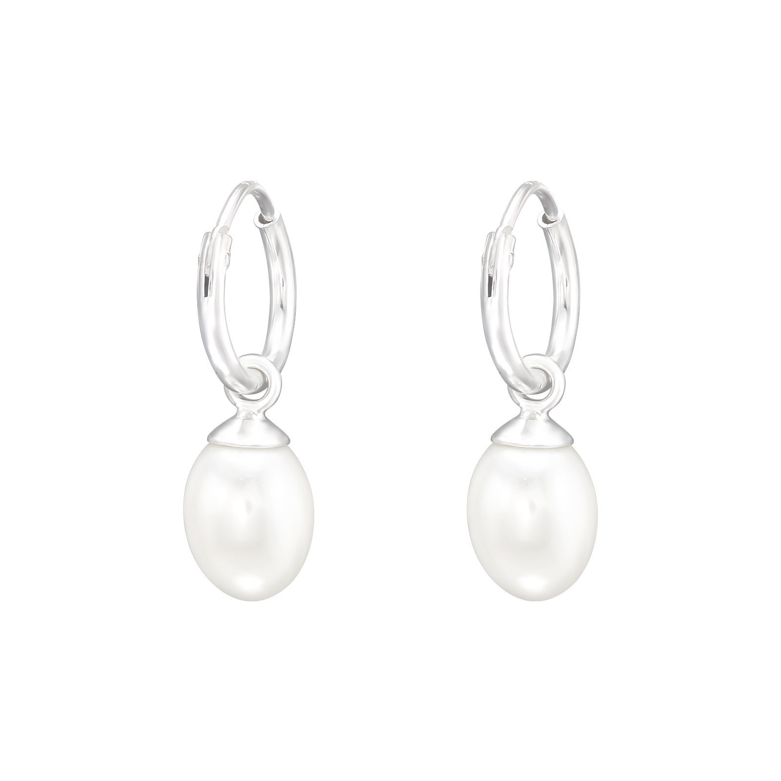 עגילי חישוק – מכסף 8 מ"מ פנינה אובלית