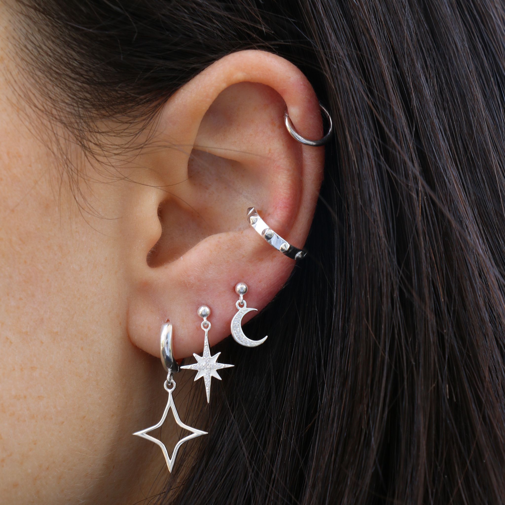 זוג עגילי חישוק האגיס מכסף – כוכב