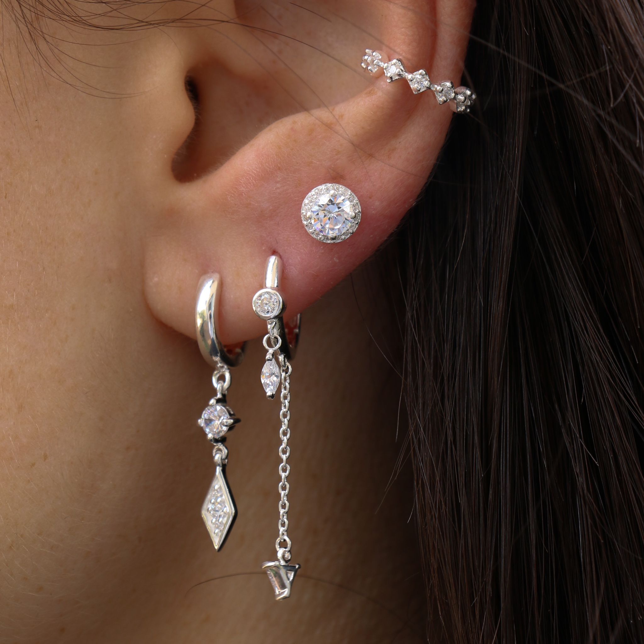 זוג עגילי חישוק האגיס מכסף – זירקוניה לבנה ומעויין עם קריסטלים לבנים
