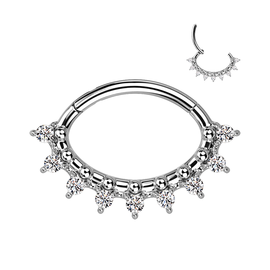 עגיל הליקס / ספטום / רוק / דיית' טבעת D קליקר מטיטניום 1.2 * 10 / 8 מ"מ וקריסטלים לבנים