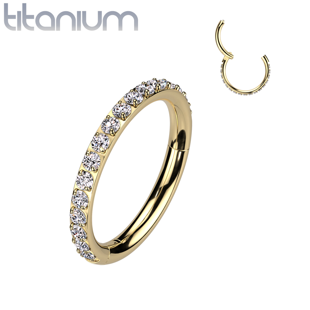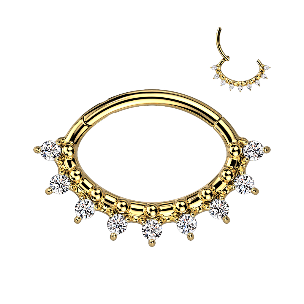 עגיל הליקס / ספטום / רוק / דיית' טבעת D קליקר מטיטניום וציפוי זהב 1.2 * 10 / 8 מ"מ וקריסטלים לבנים