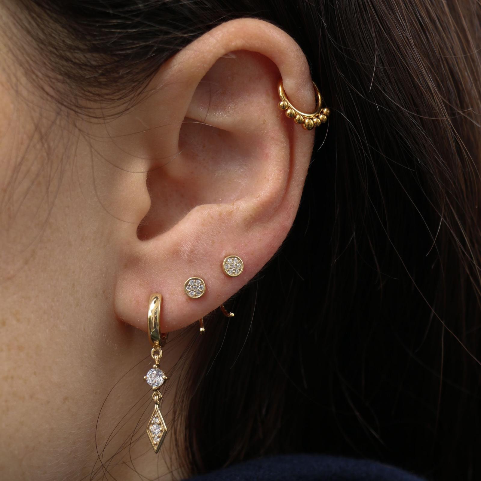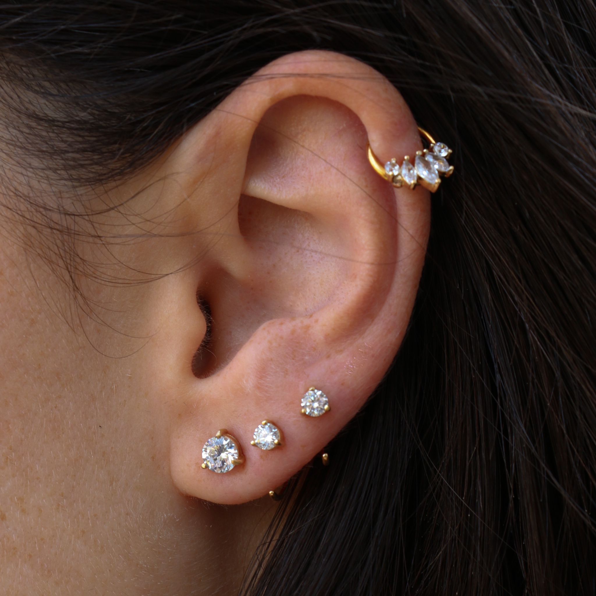 עגיל הליקס / טראגוס / קונץ' טבעת קליקר מציפוי זהב משובצת קריסטלים לבנים 10 / 8 / 6 * 1.2 מ"מ
