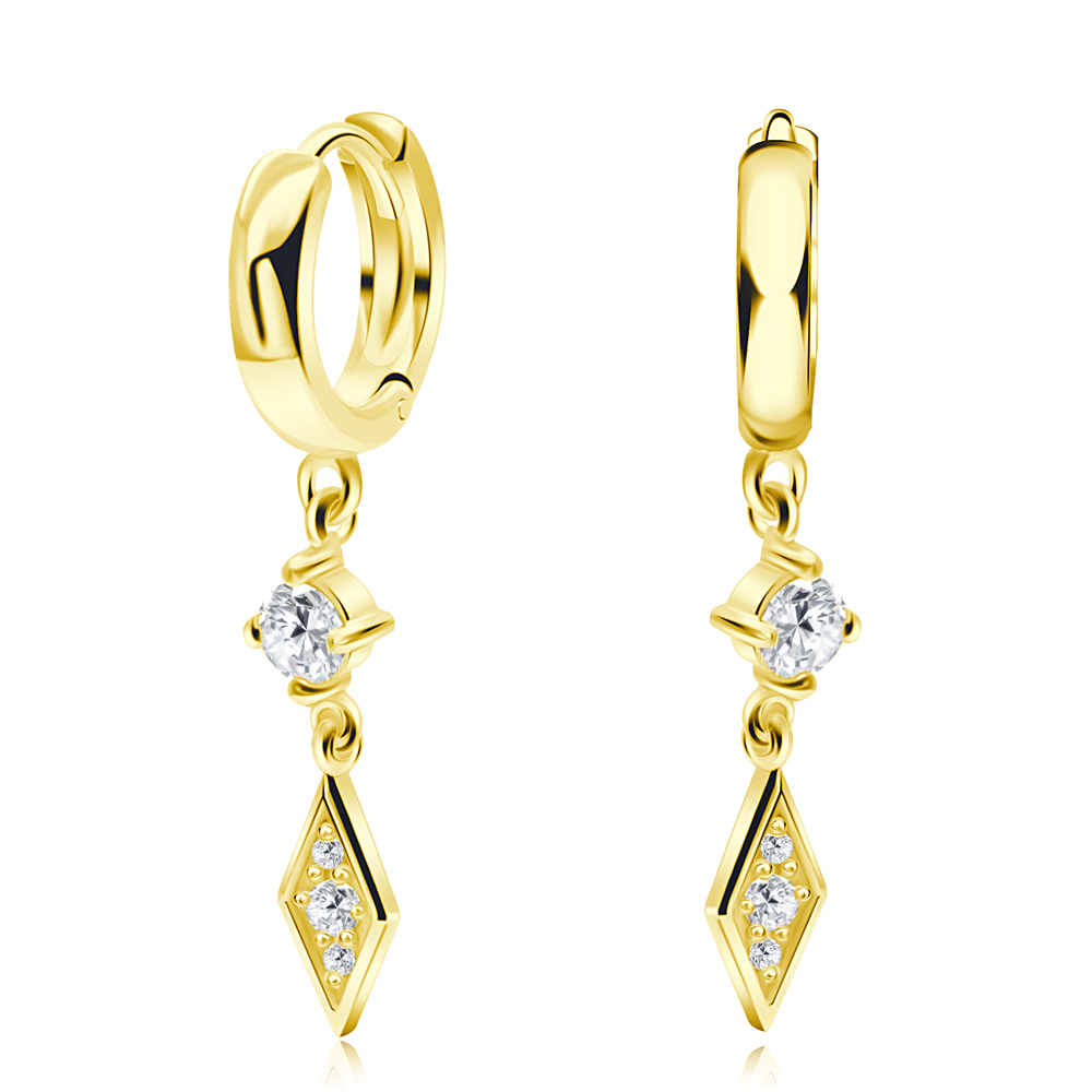 זוג עגילי חישוק האגיס מכסף וציפוי זהב – זירקוניה לבנה ומעויין עם קריסטלים לבנים
