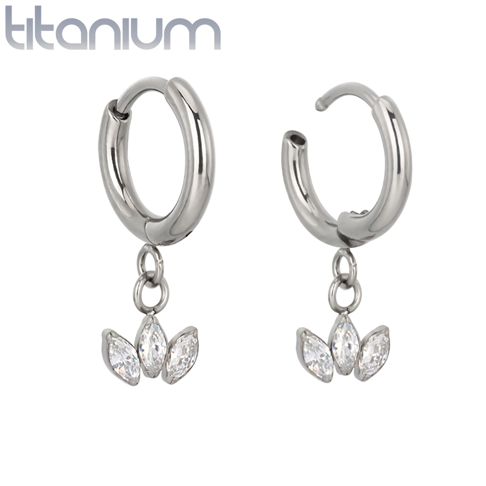 זוג עגילי חישוק האגיס מטיטניום 8 מ"מ עם לוטוס תלוי מרקיזים לבנים