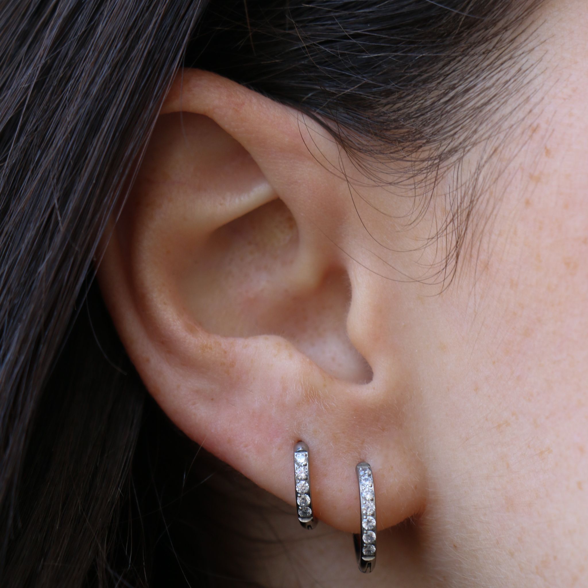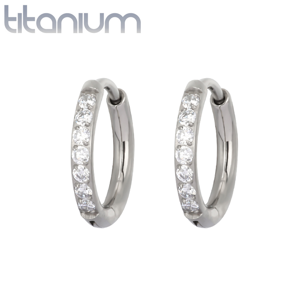 זוג עגילי חישוק האגיס מטיטניום 8 מ"מ עם קריסטלים לבנים