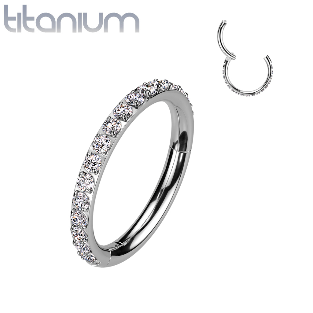 עגיל טראגוס / הליקס / קונץ ' טבעת קליקר מטיטניום 1.2 * 12 / 10 / 8 / 6 מ"מ וקריסטלים לבנים