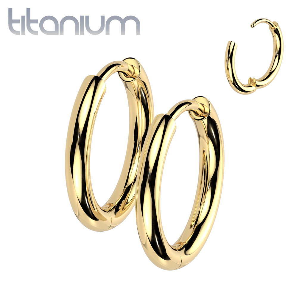 זוג עגילי חישוק האגיס 8 מ"מ מטיטניום וציפוי זהב