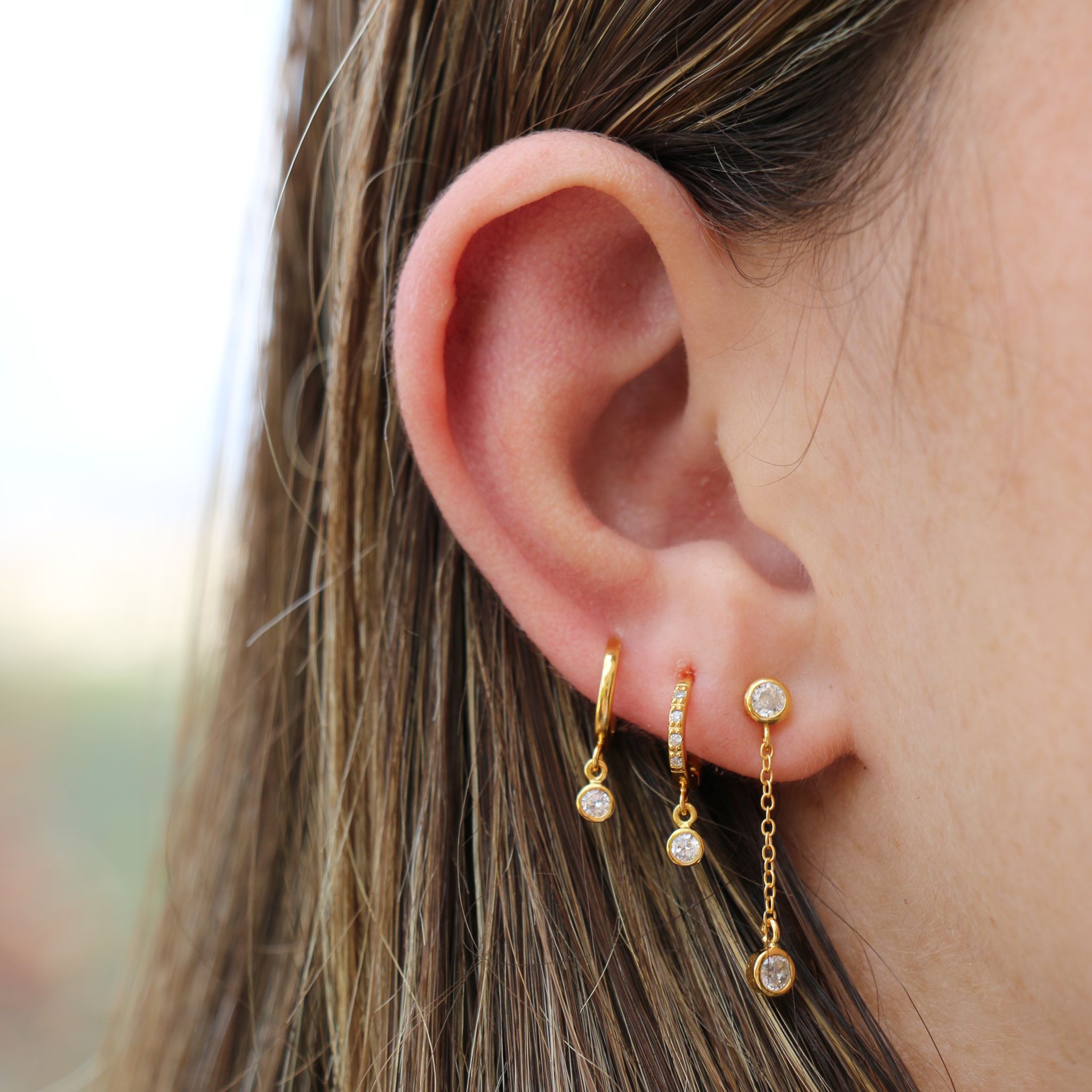 עגילי חישוק האגיס מכסף וציפוי זהב עם קריסטלים לבנים עיגול וטיפה נתלים