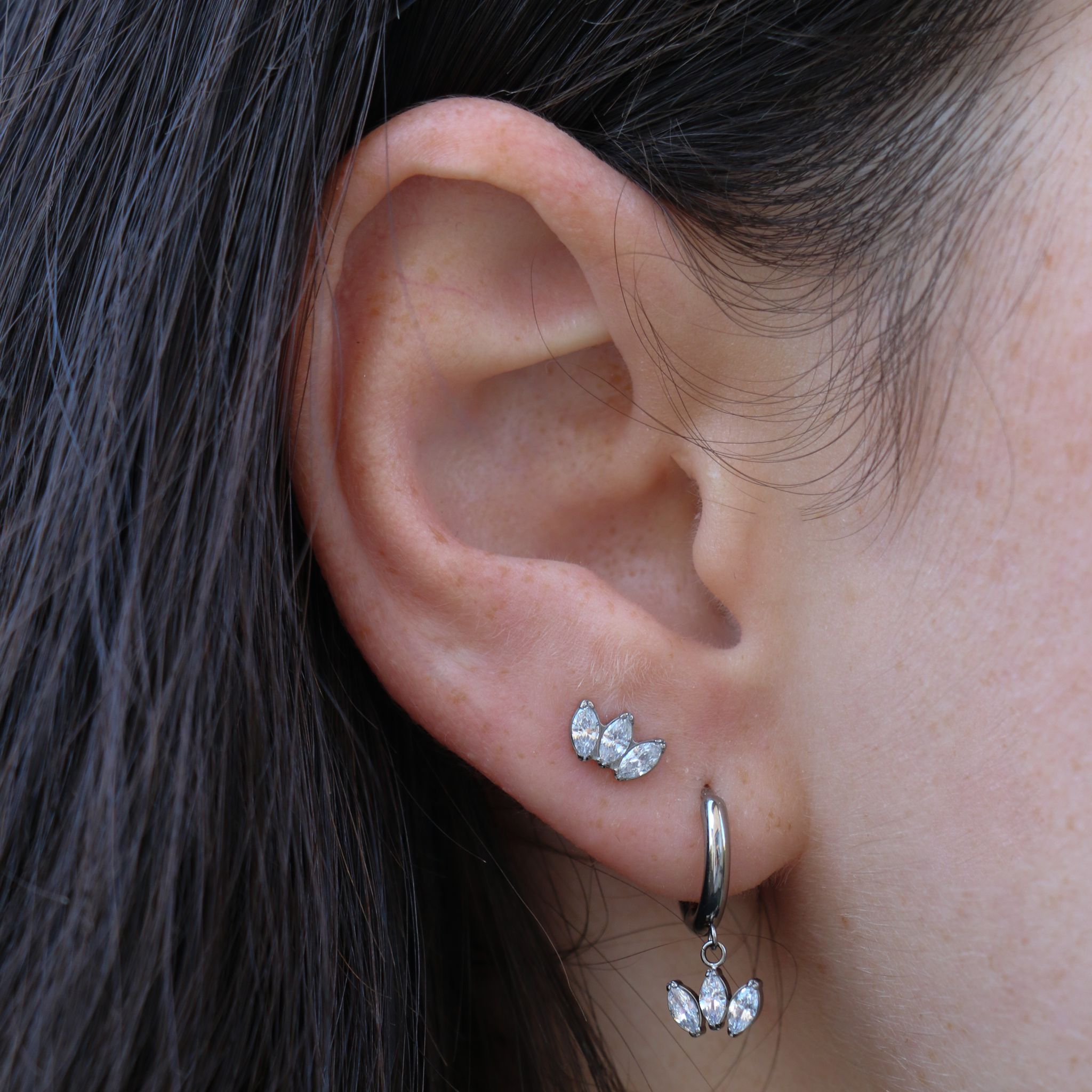 עגיל הליקס / ספטום קליקר מטיטניום 1.2 * 8 מ"מ קריסטלים לבנים ומרקיז תלוי