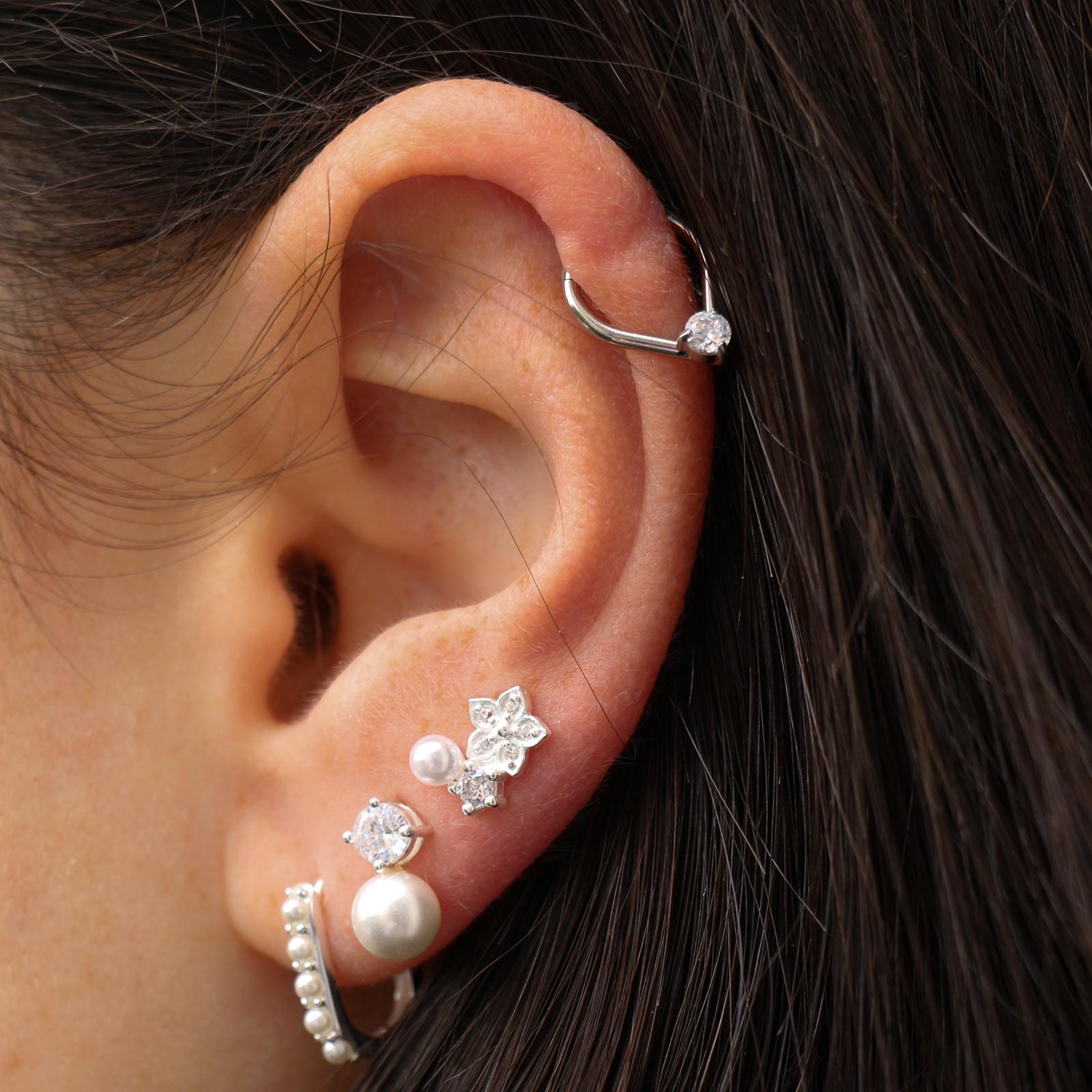 עגיל טראגוס / הליקס / קונץ' טבעת קליקר מטיטניום 1.2 * 10 / 8 / 6 מ"מ וקריסטלים לבנים