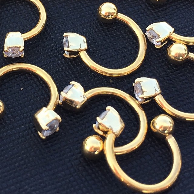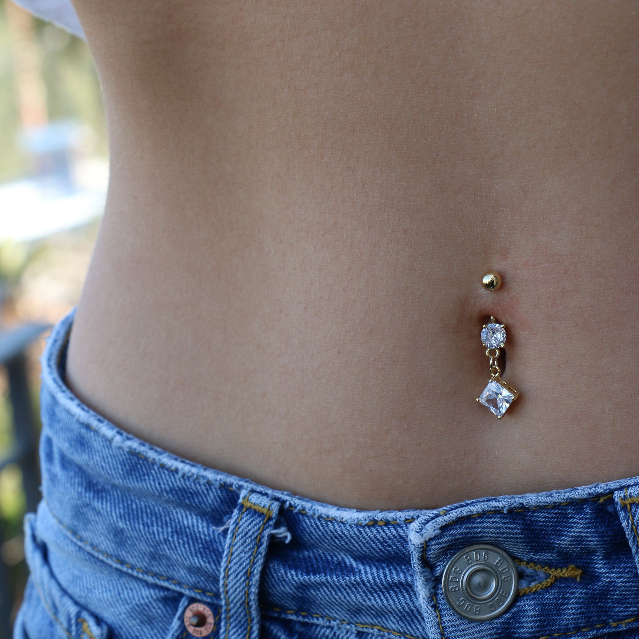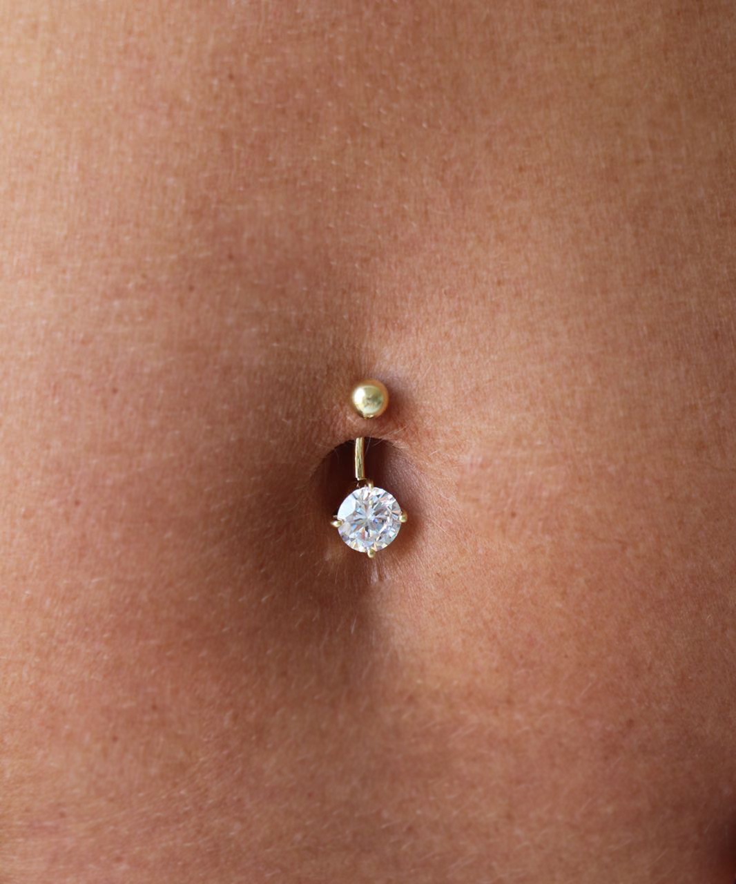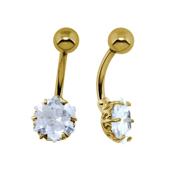 עגיל פירסינג בטבור וציפוי זהב – אזיקים עם קריסטלים לבנים