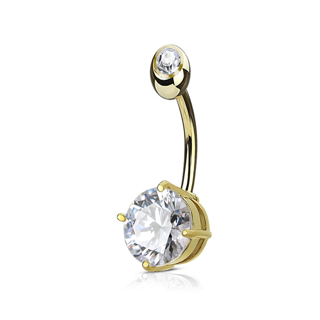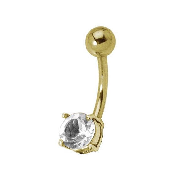 עגיל פירסינג בטבור מציפוי זהב – זירקוניה עיגול לבן
