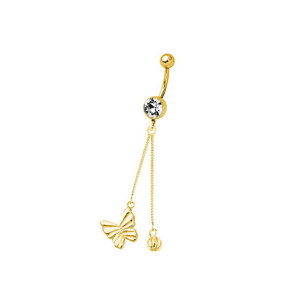 עגיל פירסינג בטבור – ציפוי זהב ושרשרת פרפר