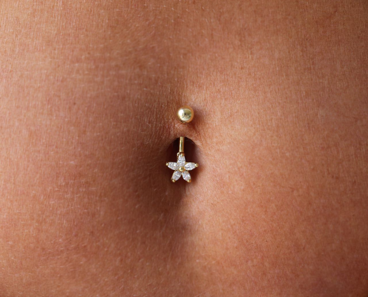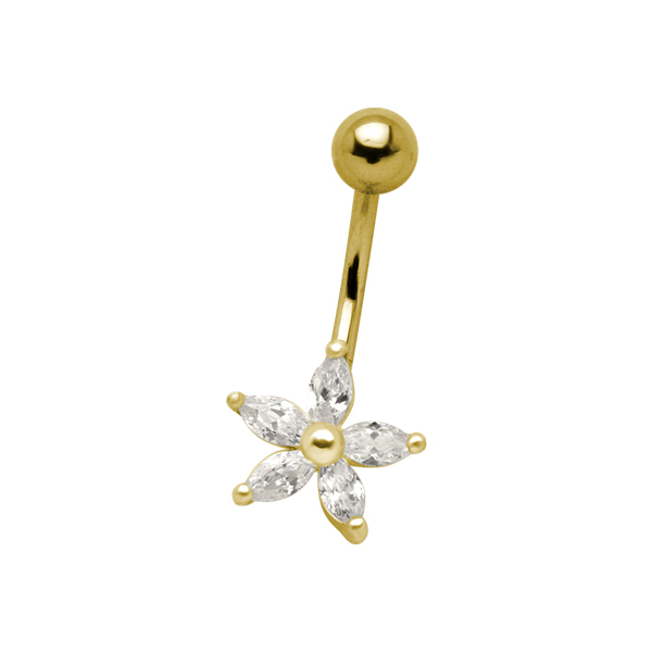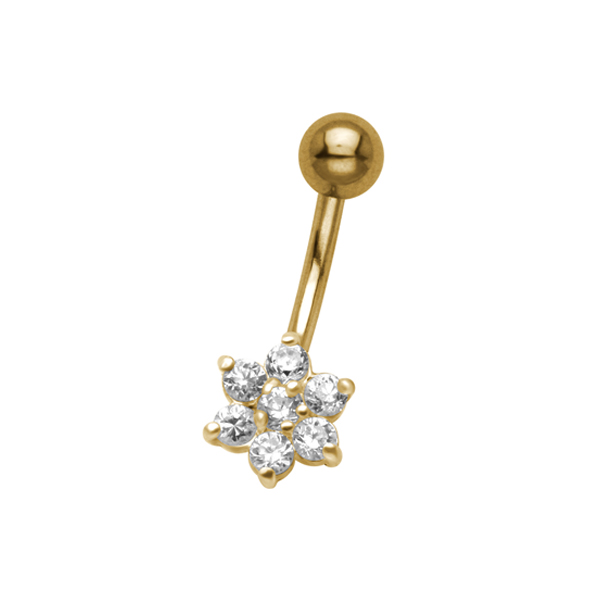 עגיל פירסינג בטבור מציפוי זהב – פרח קטן מקריסטלים