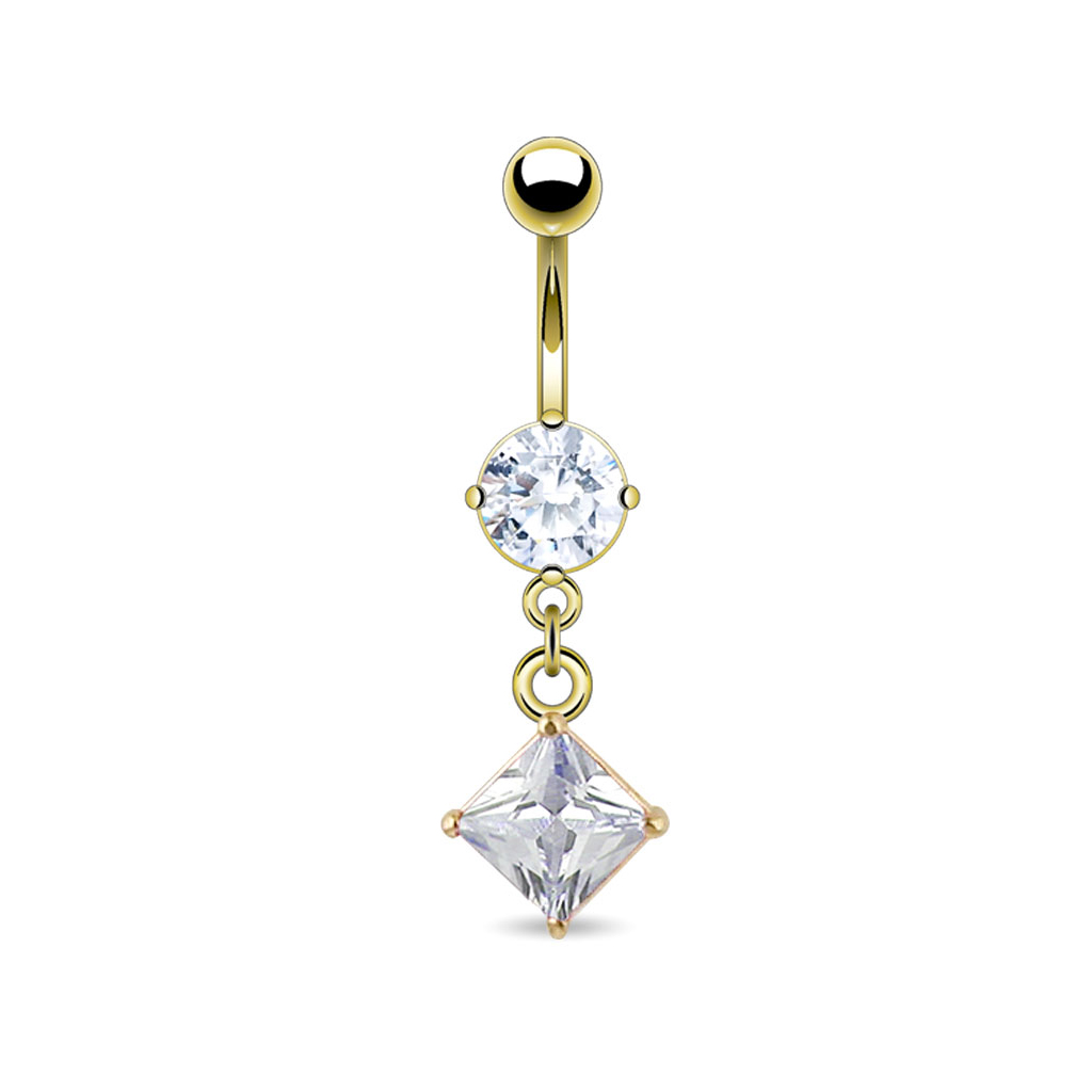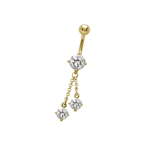עגיל פירסינג בטבור מציפוי זהב – זירקונים עיגול וטיפה
