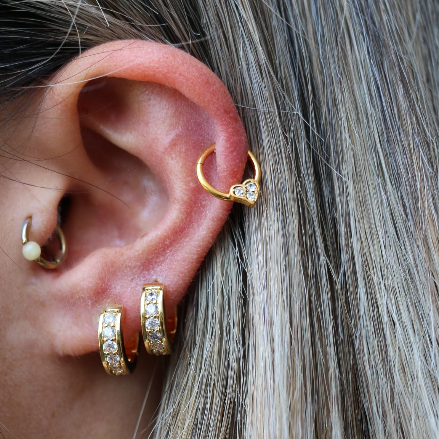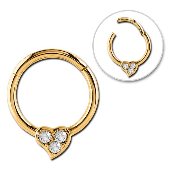 עגיל הליקס / ספטום טבעת קליקר מציפוי זהב 1.2 * 8 מ"מ לב ו 3 קריסטלים לבנים