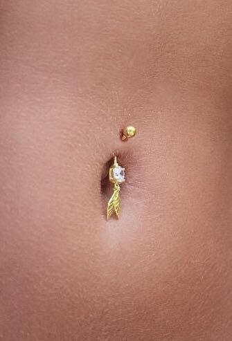 עגיל פירסינג בטבור – ציפוי זהב קריסטל ושני עלים