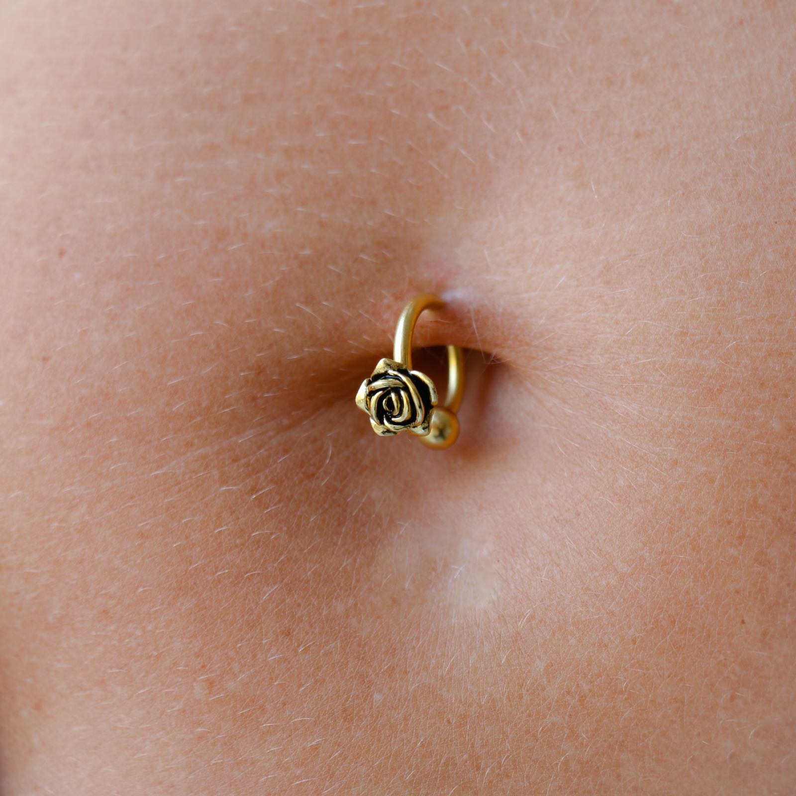 עגיל פירסינג בטבור – ציפוי זהב טבעת שושנה