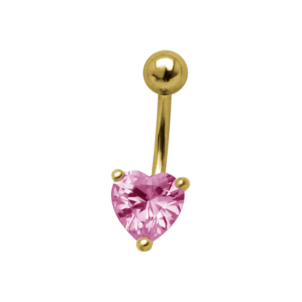 עגיל פירסינג בטבור – ציפוי זהב וקריסטל לב ורוד