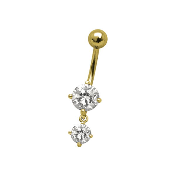 עגיל פירסינג בטבור – ציפוי זהב 2 קריסטלים עגולים