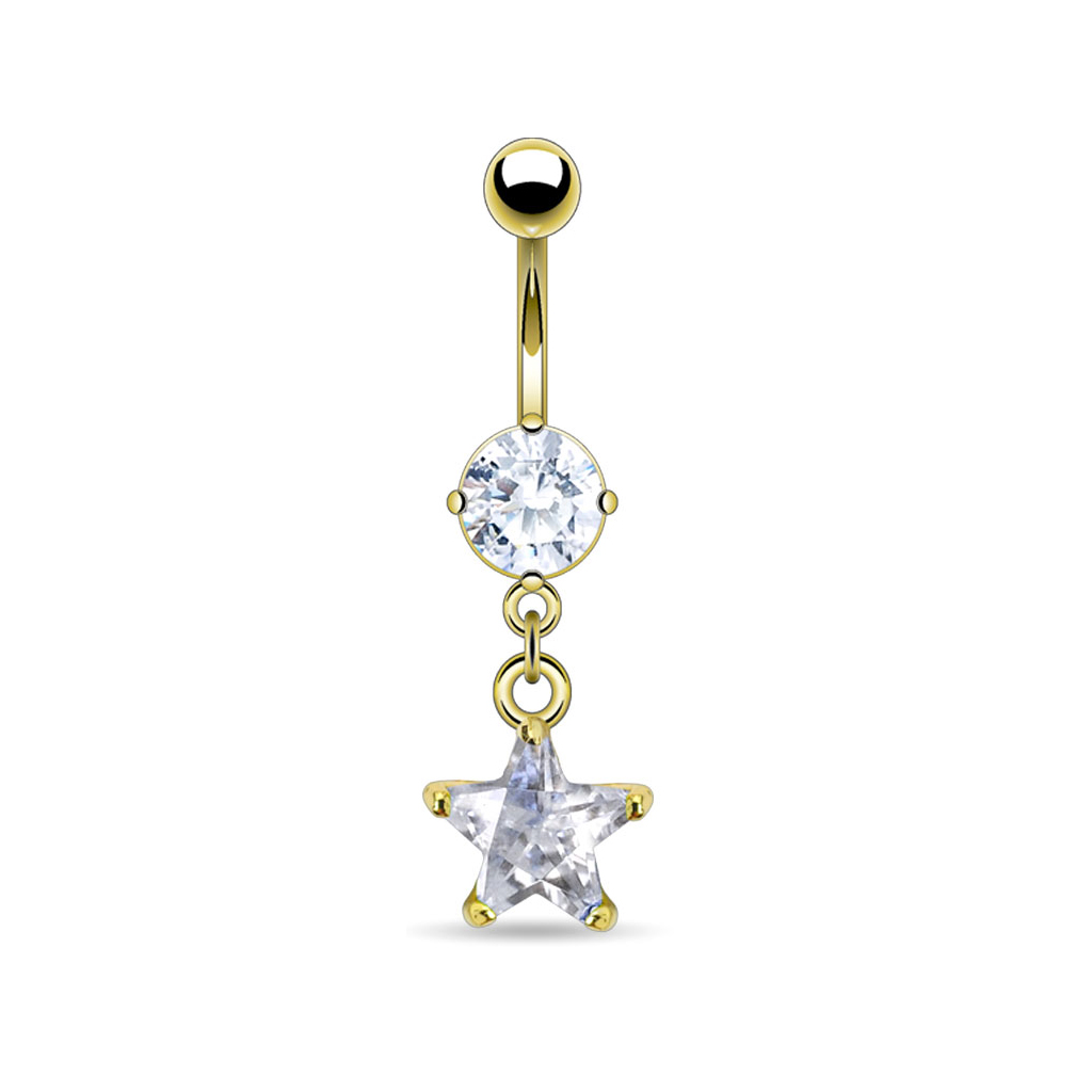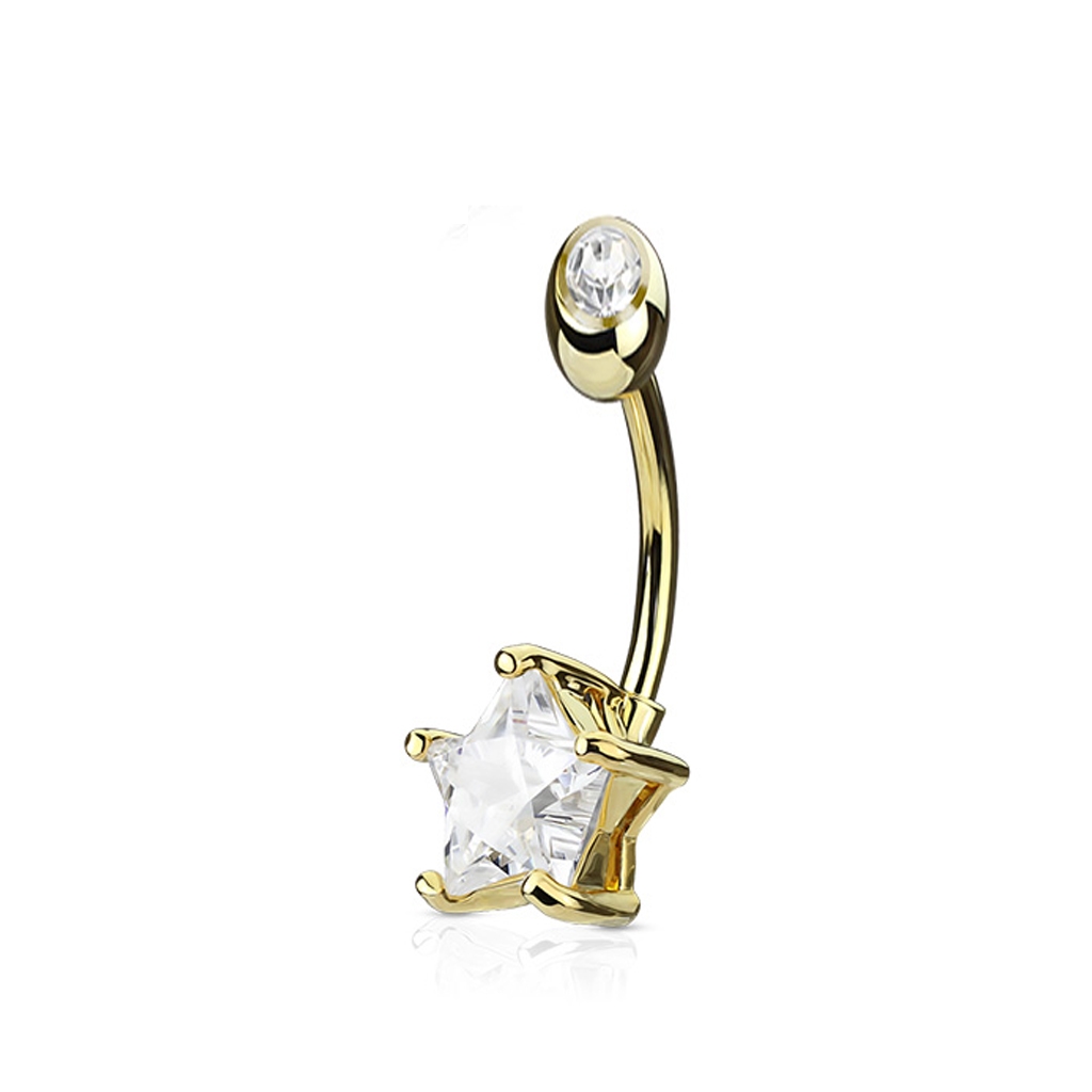 עגיל פירסינג בטבור מציפוי זהב – זירקוניה כוכב לבן