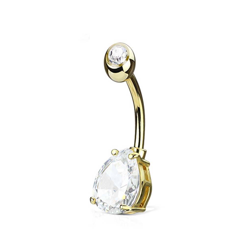 עגיל פירסינג בטבור בציפוי זהב – זירקון 10 ממ טיפה לבנה