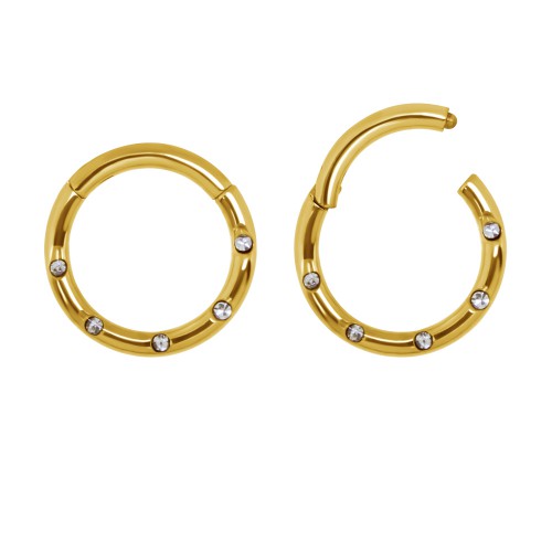 עגיל טבעת קליקר מציפוי זהב לטבור 1.6 ממ משובצת קריסטלים