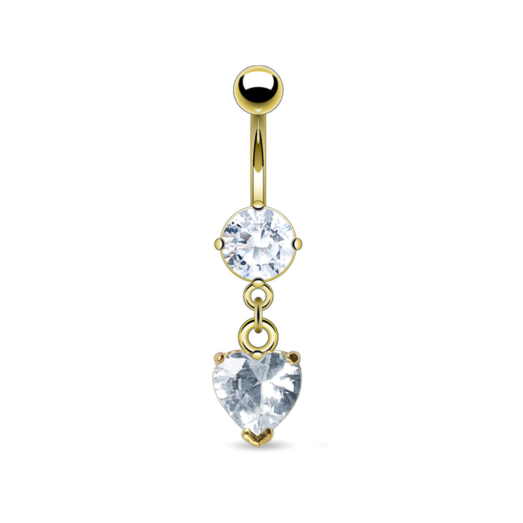 עגיל פירסינג בטבור ציפוי זהב – לב קריסטלים לבנים