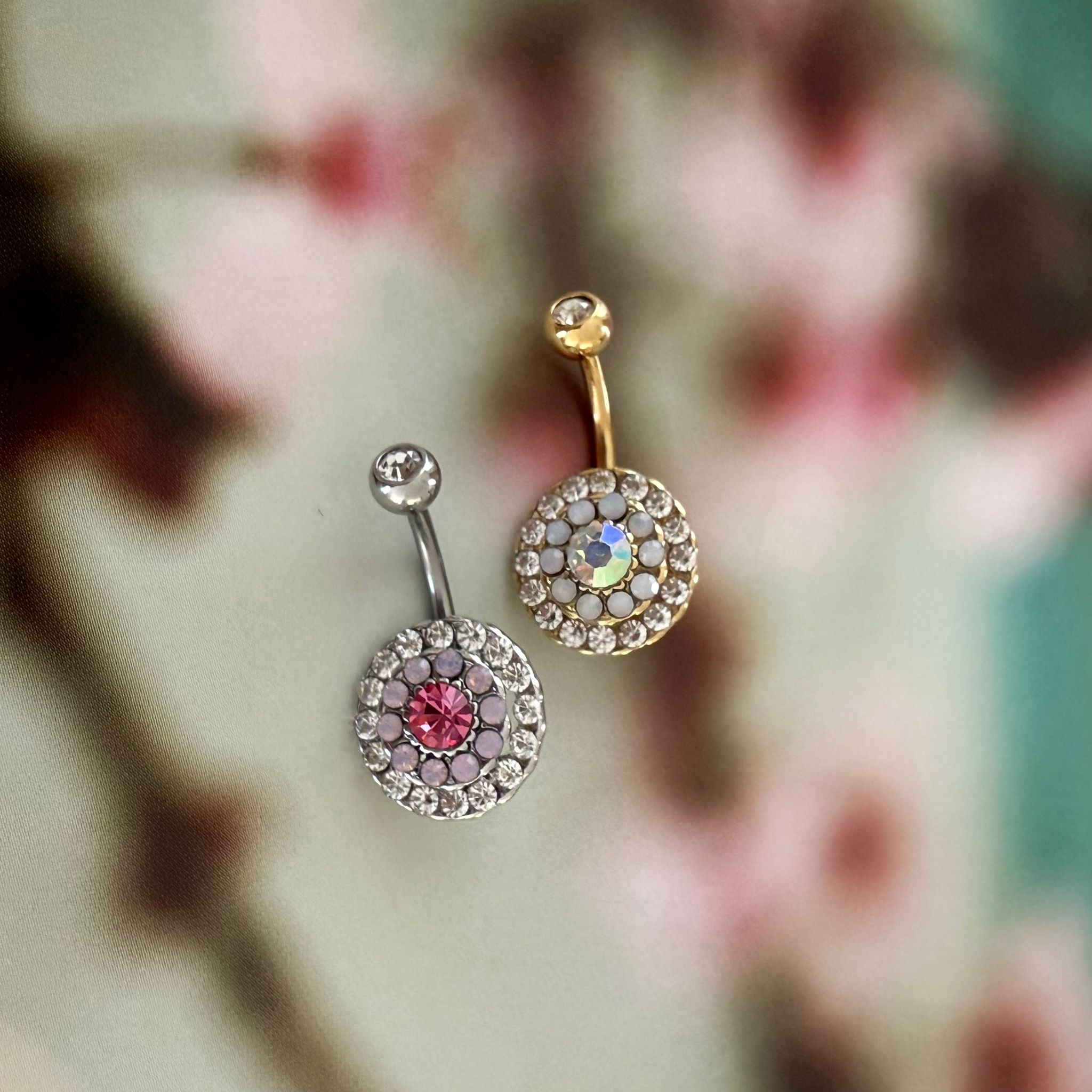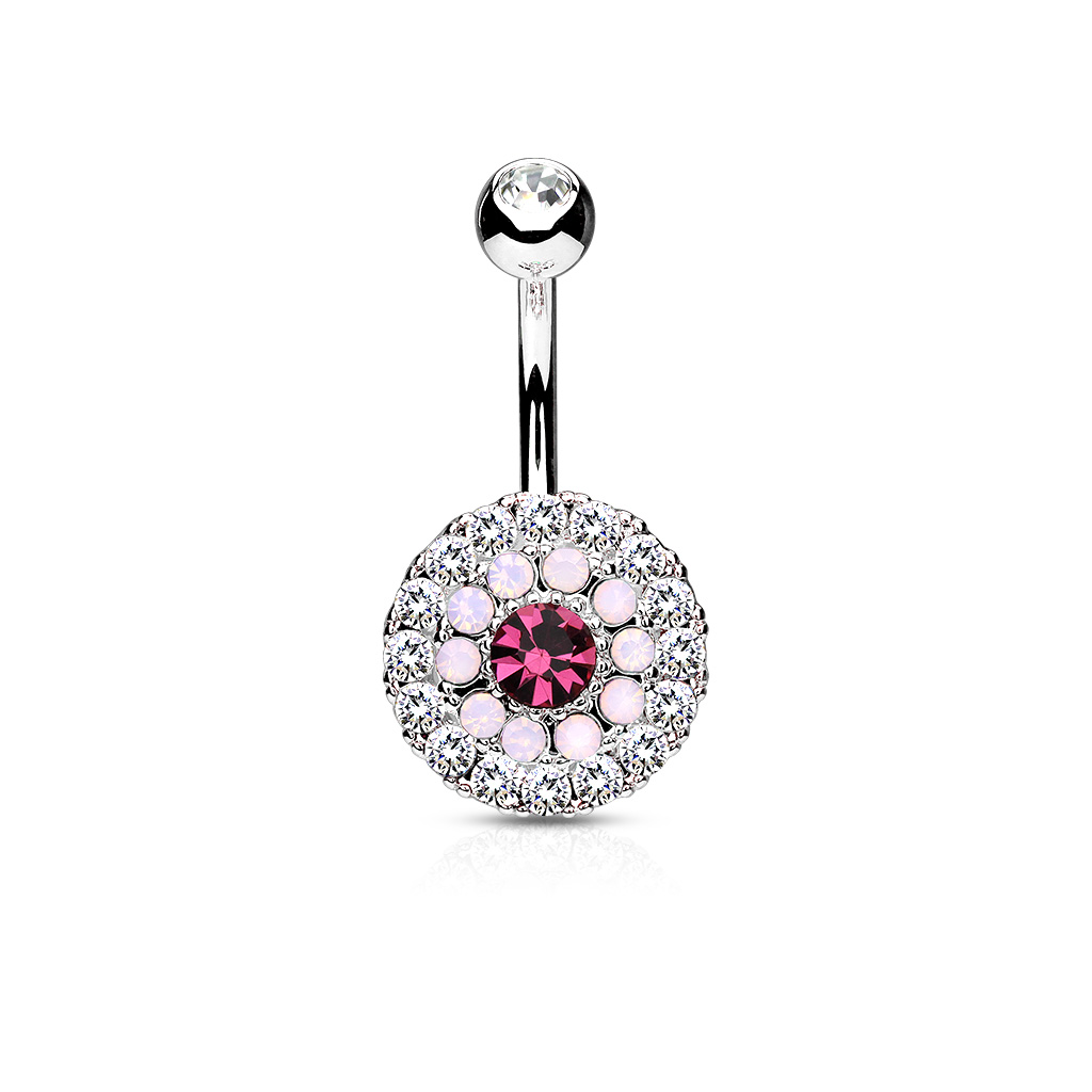 עגיל פירסינג בטבור – רוזטה קריסטלים מיקס ורודים