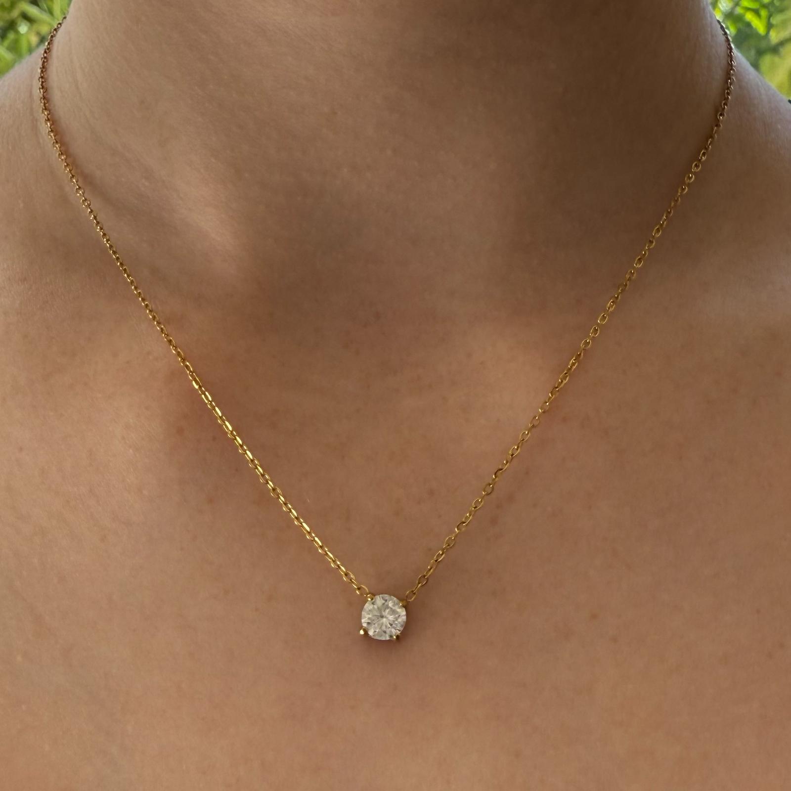 שרשרת מסטיל וציפוי זהב – זירקוניה עגולה