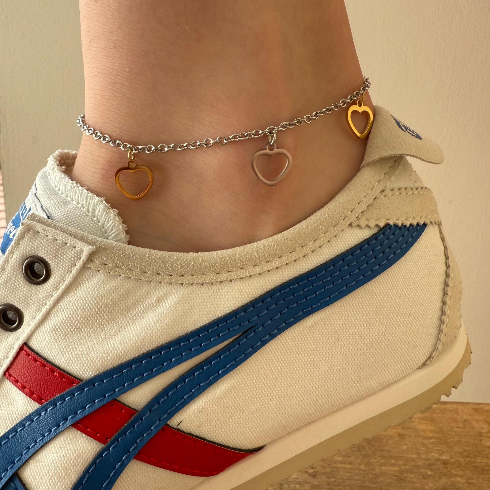 צמיד רגל מסרג'יקל סטיל וציפוי זהב – לבבות