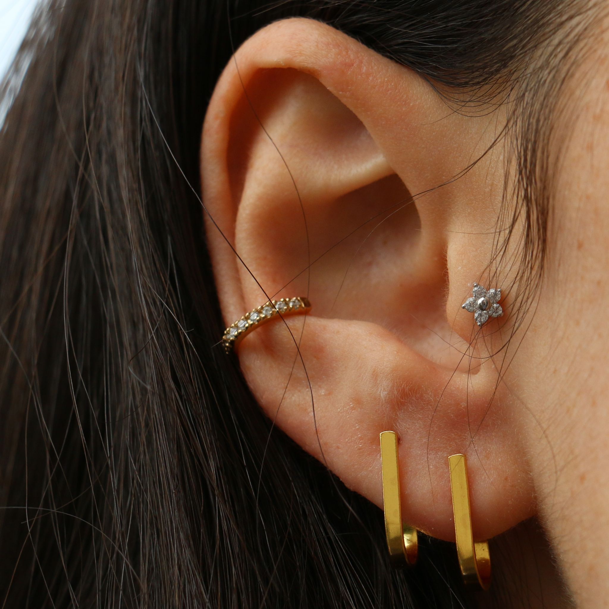 עגיל ללא חור קליפ מכסף וציפוי זהב חלק
