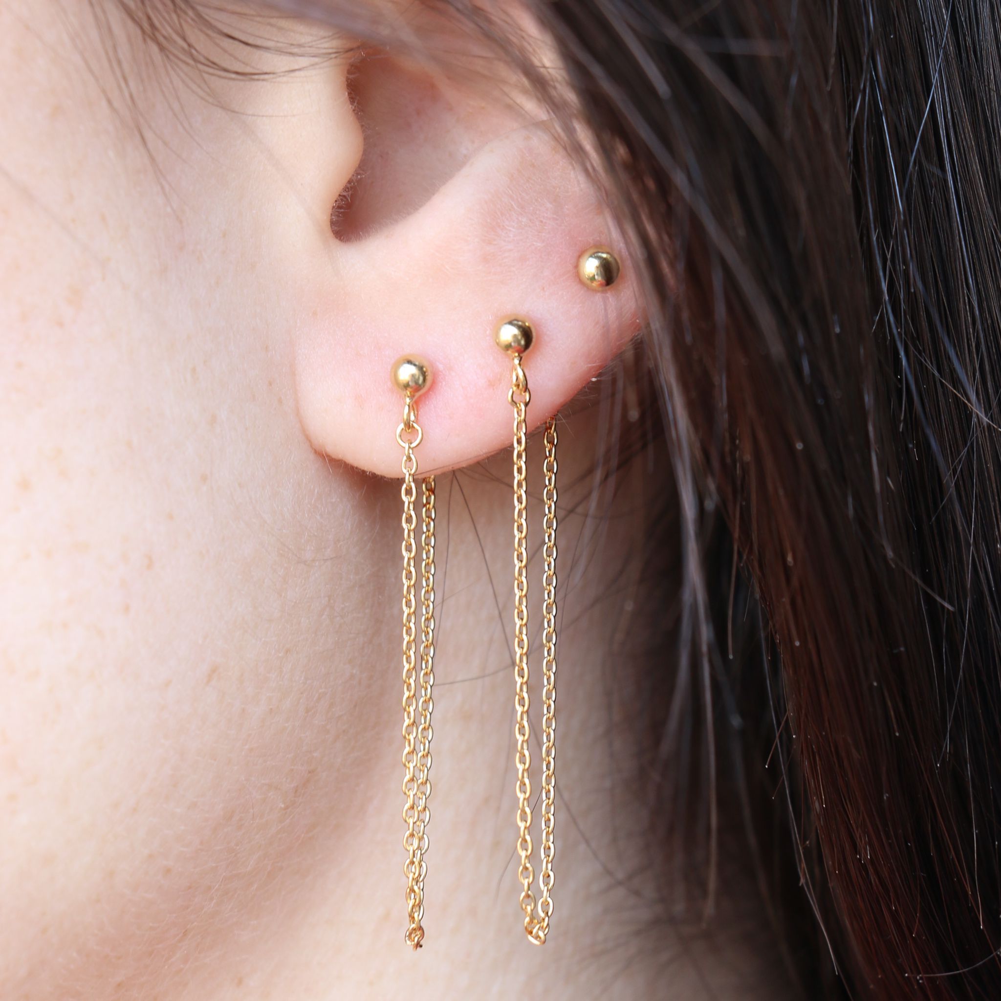 עגילי שרשרת מכסף 925 וציפוי זהב 1 מיקרון – כדור 3 ממ