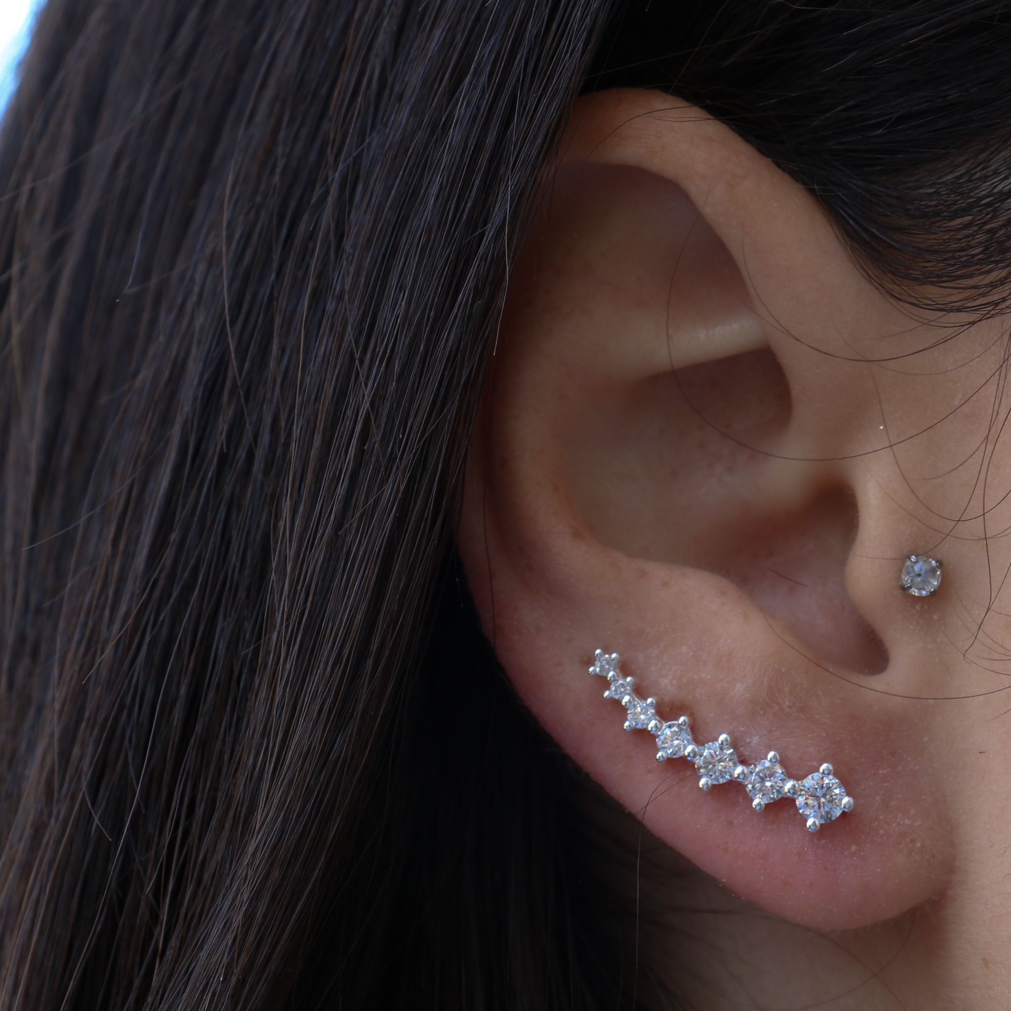 זוג עגילים מטפסים מכסף – זירקונים לבנים