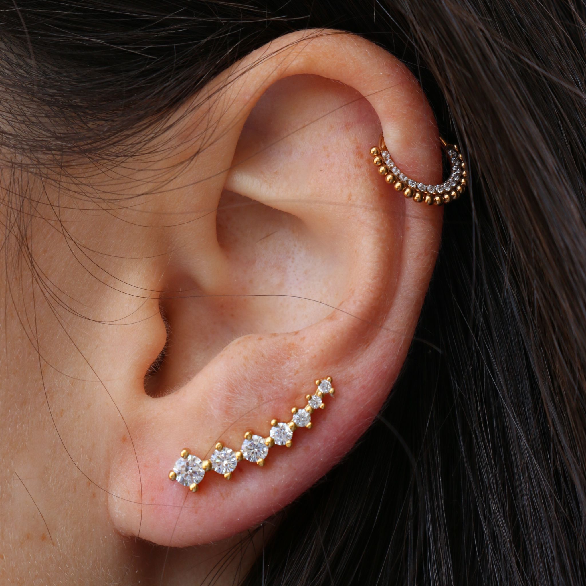 זוג עגילים מטפסים – זירקונים עגולים לבנים