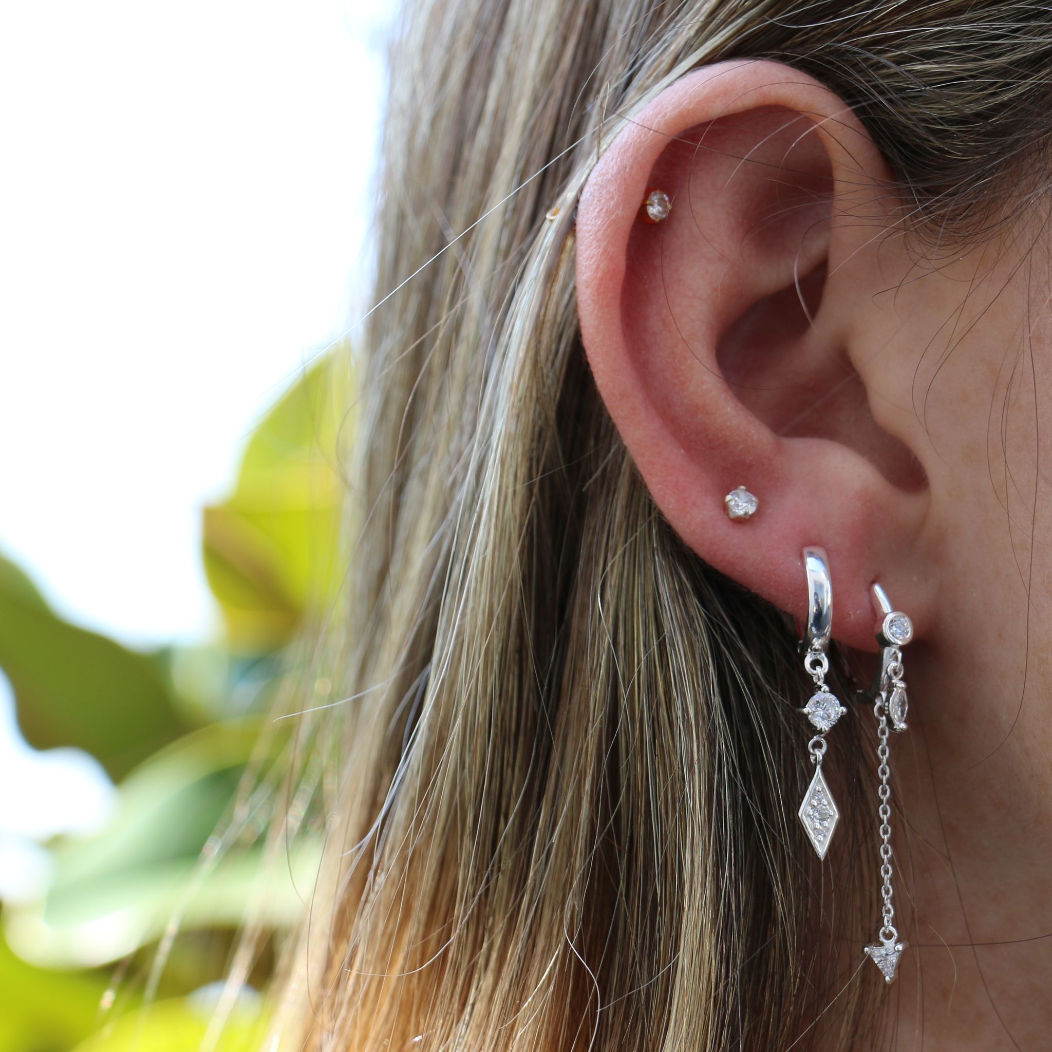 עגיל פירסינג בגבה / רוק – 3 קריסטלים לבנים