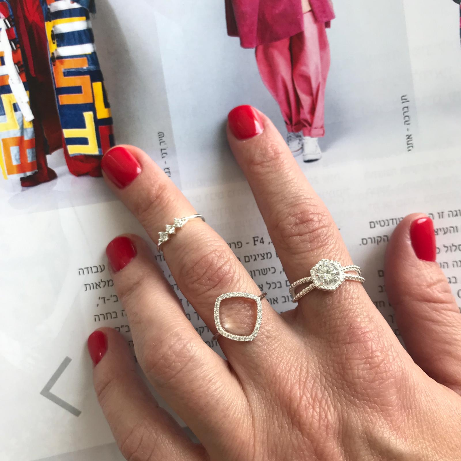 טבעת מכסף – מעויין של קריסטלים לבנים
