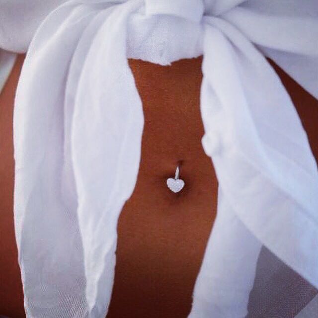עגיל פירסינג בטבור – לב חלול קריסטלים לבנים